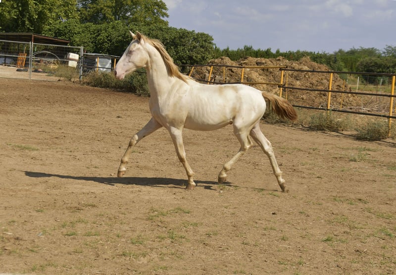 Hello friends! Today we have something special for you. Pura Raza Española . Full papers Perlino. He's turning two years old beginning next year. He stands out not only for its speacial and attractive color but also for it's movements. He's being raised in a big farm with other horses . Good value for money . Transport can be easily organised. More information send us private message or contact us via WhatsApp +34 620247441