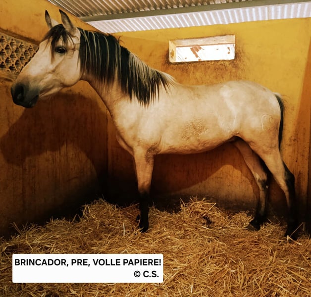 BRINCADOR, PRE, PAPELERÍA COMPLETA Caballo de venta Finca Barroco Este hermoso ejemplar de línea barroca, con un color especial, tiene 2,5 años, mide ya 1,57 m y acaba de salir del potrero de sementales. ❤ Puede quedarse con nosotros por un tiempo más y comenzar su entrenamiento en verano. A partir de los 3 meses ofrecemos paquetes de entrenamiento a precios especiales 👌 La castración tampoco es un problema; realizamos castraciones cada 14 días. Si estás interesado, contacta por WhatsApp: 0034 670 097 903. Precio acorde a la calidad. Un saludo, Carmen