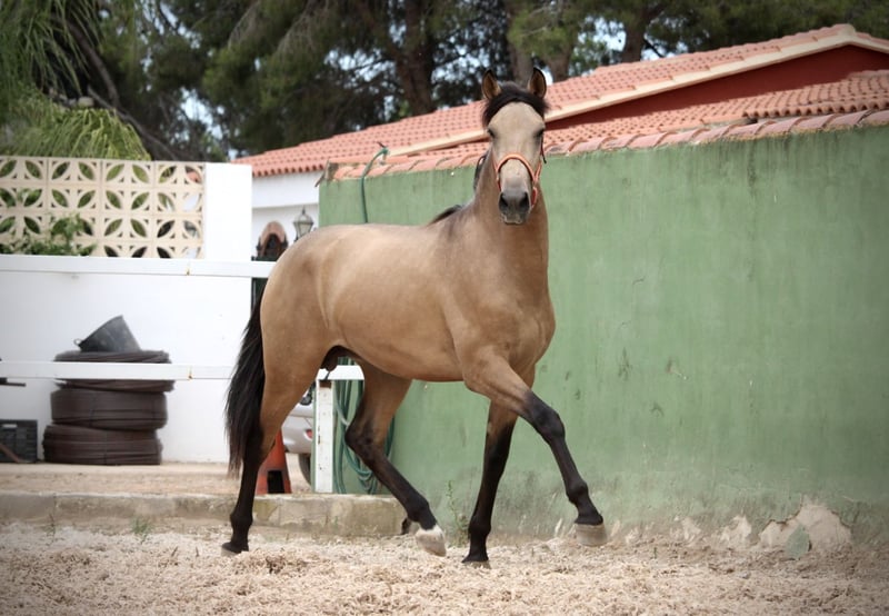 This super stylish young PRE palomino stallion is still waiting for his great luck! He has already been well educated by his owner in the basics of foal training and has been slightly lunged. KAFKIANO is expected to reach a height of approximately 1.63-1.65m. He has full papers from the Spanish breeding association ANCCE. Location: Valencia, Spain.