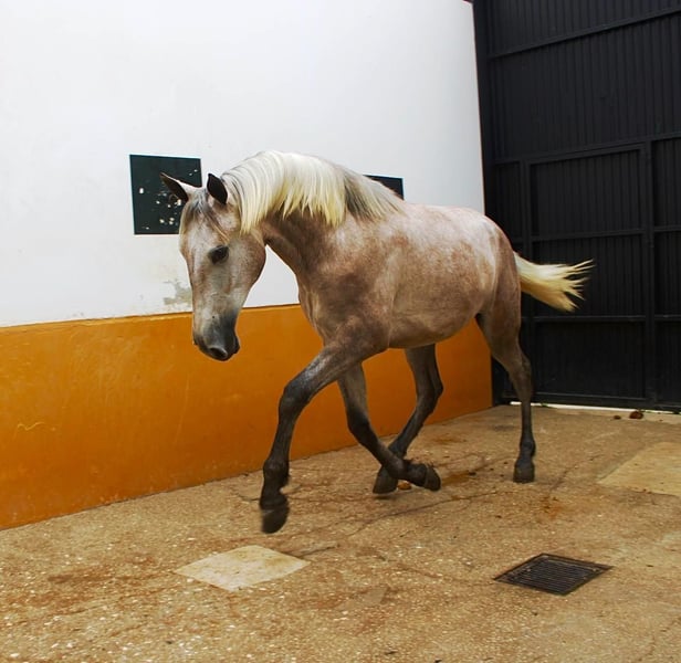 Dieser qualitätsvolle Junghengst sucht seinen neuen Besitzer. Der junge Mann ist mit drei sehr guten Grundgangarten ausgestattet, die durchaus Potential für eine Dressurkarriere bieten. In seiner Ahnengalerie sticht der Calificado Hengst und Sicab Gewinner Fer Bago heraus. Ein toller junge Hengst, zum Selbstausbilden. Das Pferd wird im Auftrag verkauft Er kann gerne bei uns noch in Beritt bleiben. Eine AKU wird kurzfristig organisiert. Internationaler Transport.