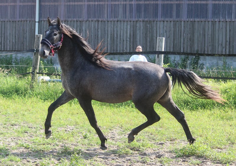 Garibaldi is op tweejarige leeftijd al een absolute blikvanger. Het is niet makkelijk om dit gezicht te vergeten. Het grote oog, de licht geramde neus, de lange hals met een fijne nek - alles past gewoon bij elkaar. Garibaldi komt van vaderskant uit een sportieve lijn en van moederskant uit een lijn van klassieke werkpaarden uit de Spaanse stierenweiden. Hij is geboren met beweging, wendbaarheid, lichtvoetigheid en uithoudingsvermogen. Met zijn uitstekende bouw in lijn met het rastype is hij zeer interessant als rijpaard en voor latere fokdoeleinden. Fokprogramma's voor Spaanse paarden zouden ook een uitstekende arena voor hem zijn. Garibaldi heeft goede tot zeer goede basisgangen. Garibaldi is geboren in Noord-Duitsland, is gewend aan Duitse weiden en is 100% vrij van piroplasmose. Al onze paarden zijn blootsvoets, dus ook dat zou geen probleem moeten zijn voor deze jonge hengst.