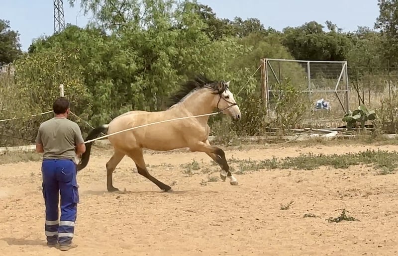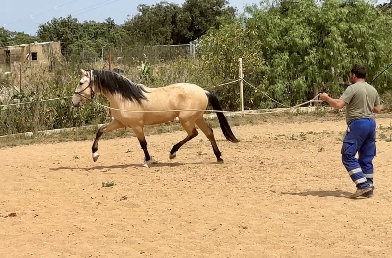 Let me show you something very very special We have this beauty for sale. A 3 year old stallion, Pura Raza Española. Full papers, Bucskin colour. He stands out not just by his colour but also by his conformation and movements. We invite you to watch the videos.. We are sure that he could be the dreamt horse by all of you who have always wanted to have an Andalusian horse. Worldwide transport can be easily organised. If you want to know more abour us , please visit our facebook page https://www.facebook.com/sierraonuba More information send us private message or contact us via whatsapp +34 620247441