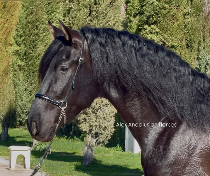 Handsome black & barock PRE with full papers ( ANCCE). 3years old / 1.68cm Nice and expressive face, he have sweet and calm character, friendly with other horses. He is ridden still green undersadlle, normal he is starting but he learn very fast. He is piro FREE and he have good XRAYS! We have recently videos of him undersaddle. More info please contact/us : Alex Andalusian Horses (+34)657314412. We organize vetcheck, transport, quarantine, documents etc.. Follow/us at our social network!! We have more 100 horses available in Spain, We know and choose all our horses in person!