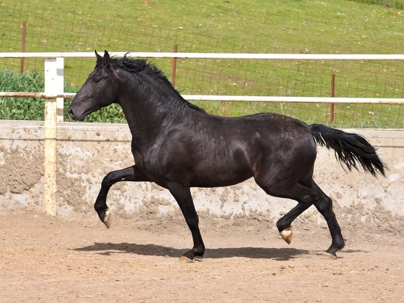 Wir haben es mit einem jungen Exemplar aus dem Jahrgang 2023 zu tun, das mit seinen 1,70 m Stockmaß, seiner eindrucksvollen schwarzen Fellfarbe und einer kaum zu übertreffenden Abstammung überzeugt. Väterlicherseits stammt er von Nazareno FS ab, einem Sohn von Coral, einer Elite-Stute, was ihn in eine exklusive Blutlinie innerhalb der Rasse einordnet. Mütterlicherseits trägt er den Einfluss des emblematischen Duiker Moor, einem der bekanntesten schwarzen Pferde der PRE-Welt. Mit dieser Kombination zeigt er nicht nur Bewegungen von hoher Qualität, sondern besitzt auch das Potenzial, sowohl im Sport als auch als zukünftiger Zuchthengst zu glänzen.