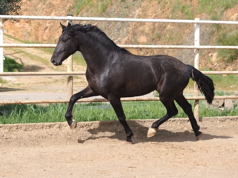 We are looking at a young specimen born in 2023, already impressive with his 1.70 m height, striking black coat, and a pedigree that is hard to surpass. On the paternal side, he descends from Nazareno FS, a son of Coral, an elite mare, placing him within an exclusive lineage of the breed. On the maternal side, he carries the influence of the emblematic Duiker Moor, one of the most renowned black horses in the PRE world. With this combination, he not only shows high-quality movement but also has the potential to excel both as a sport horse and as a future breeding stallion.