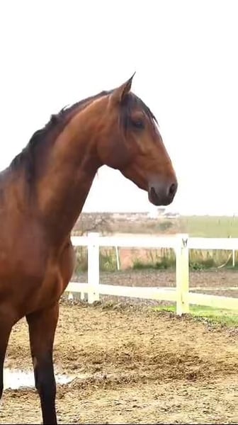 Cale, our gentle giant, has a height at the withers of approximately 1.75 meters (around 17.2 hh). He was born in May 2023. At his age, he is still quite green but is accustomed to being lightly lunged. Cale has a pleasant temperament, knows how to present himself well, yet remains easy to handle at all times. He has very good movement and a clear, confident character. Ideal for someone looking to train a large PRE stallion themselves. Location: Barcelona, Spain If you would like more information about him, please contact us by phone. We do not respond to anonymous inquiries. Transport can be arranged worldwide. Viewings are possible at any time by appointment.
