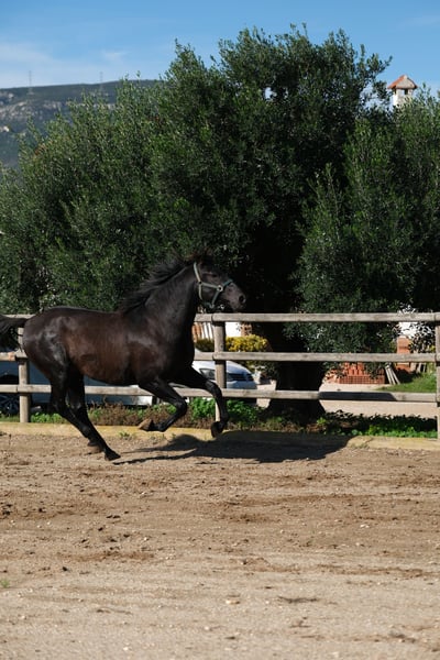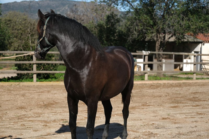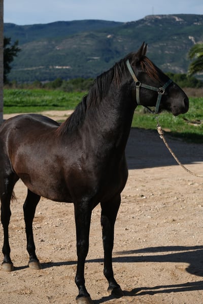 Ce magnifique étalon PRE cherche l'élu de son cœur. Il a un charisme époustouflant et des allures magnifiques. De plus, il a un caractère curieux et attentif. Mais il est aussi énergique et plein de tempérament et a besoin, dès son plus jeune âge, de quelqu'un à ses côtés qui l'éduque avec amour et cohérence afin qu'il devienne un jeune étalon ou hongre poli. Il est actuellement âgé de 2,5 ans et mesure 1,60 m. À l'âge adulte, nous estimons qu'il mesure entre 1,63 et 1,65 m environ. Actuellement, il est encore brut et peut profiter de sa jeunesse dans son troupeau de jeunes étalons. A l'avenir, nous pouvons l'imaginer dans de nombreux domaines, aussi bien en dressage, pour le working-equitation, pour le show, pour l'élevage ou simplement comme partenaire de loisirs. Il a pu passer son enfance dans un grand troupeau de juments et leurs poulains au pré et à environ 8 mois, il a été séparé de sa mère et peut depuis s'épanouir dans son troupeau de jeunes étalons. Sur demande, il peut également être castré sur place en Espagne. Emplacement : Barcelone, Espagne, une rencontre en Espagne et le transport peuvent être organisés sans problème.