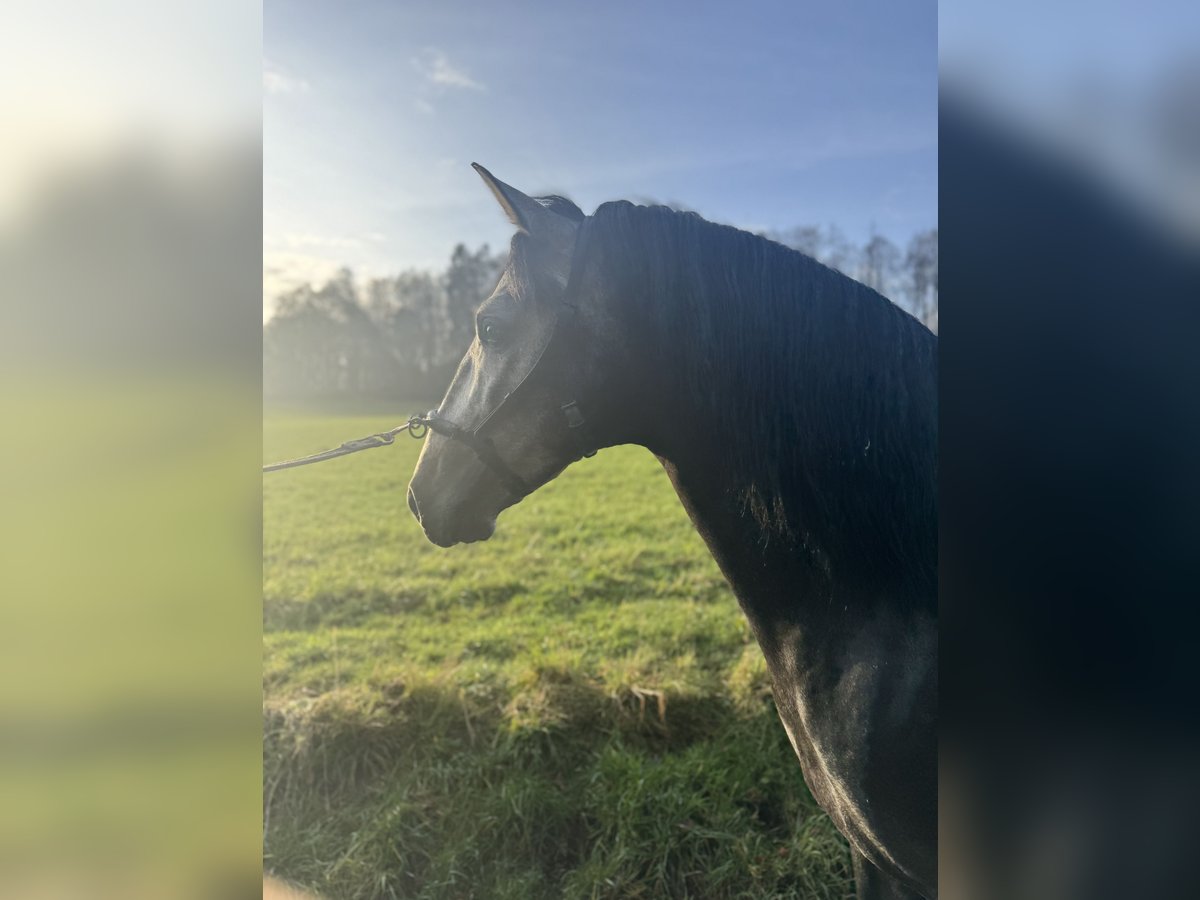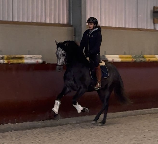 Schöner 3-jähriger P.R.E. Hengst, seit einigen Wochen schonend unter dem Sattel. Er zeigt sich sehr kopfklar, freundlich und mit einer angenehmen Einstellung zur Arbeit. Für sein junges Alter ist er ausgeglichen und macht täglich positive Fortschritte. Der Hengst verfügt über drei gute bis sehr gute Grundgangarten mit viel Qualität. Der Schritt benötigt aktuell noch etwas Zeit zum vollständigen Loslassen, was alters- und ausbildungsbedingt ist. Trab und Galopp zeigen sich aktiv, gut ausbalanciert und mit schöner Mechanik. Er ist unkompliziert im Umgang, brav im täglichen Handling und vermittelt dem Reiter ein sicheres Gefühl. Das im Inserat gezeigte Video entstand bei seinem ersten Aufenthalt in dieser Halle, was seine Gelassenheit und gute Nervenstärke unterstreicht. Gute Röntgenbilder sind vorhanden. Der Hengst steht derzeit in Luxemburg und kann nach Absprache gerne vorgestellt werden.
