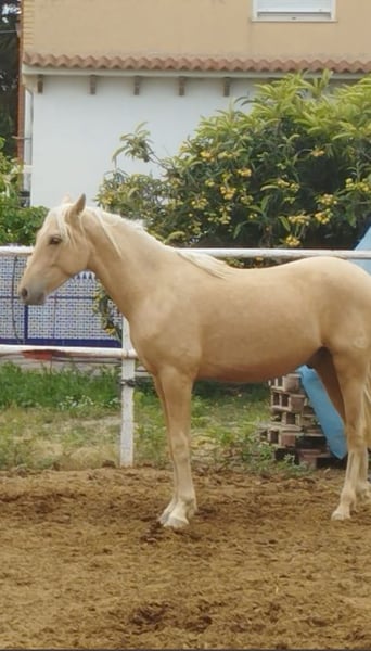 3 year old palomino PRE stallion. Entered in the ANCCE studbook. His sir IDEUS, was compeeting in Prix St. Georges level. in his pedigree highlights ZADIMIR II awarded as "Qualified Stallion", "Dressage Improoving Sir" and "Dressage Recommended Sir". Good movement. Is interesting dressage prospect as a wall stallion for breeding dilute coloured horses. The horse is currently located in Spain.