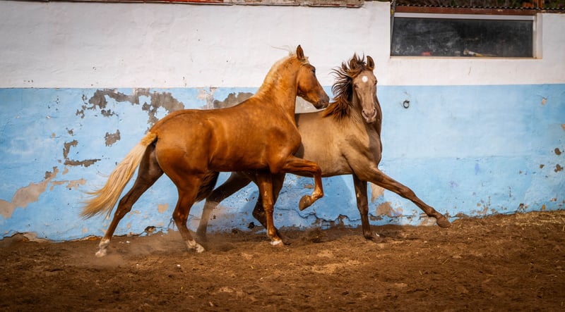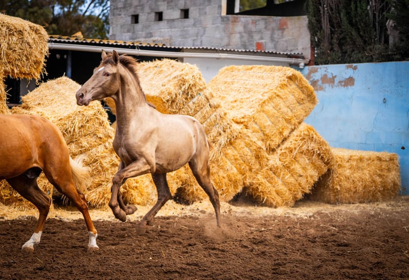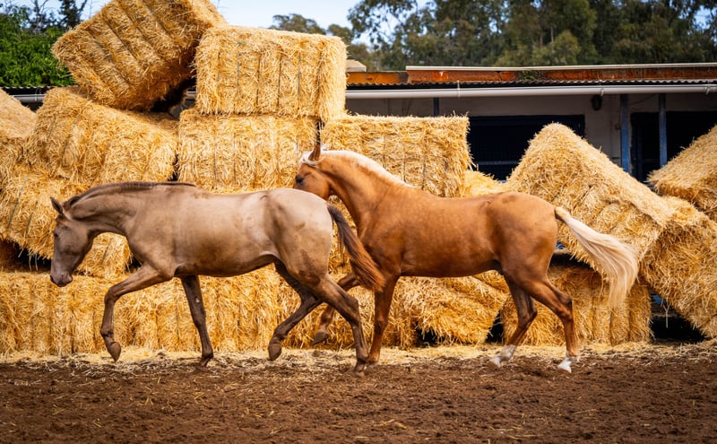 Young horse: Another chic champagne stallion with the color genetics: ggaaEEPRLPRL. So it always releases a Pearl gene 100%. He is very well socialized and, as you can see from the photos, very playful. He wears Peralta, Yeguada Militar, Bohorquez Blood and Torreluna. / More information on request!