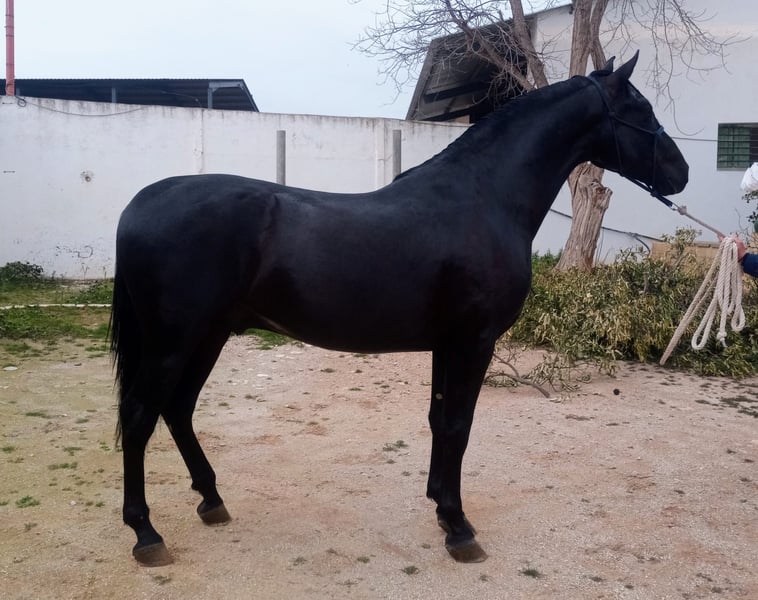 This young black horse impresses with his elegant appearance and friendly nature. With a height of 162 cm, he is the ideal companion for the leisure rider looking for a reliable and charming partner. His excellent pedigree and even temperament make him the perfect horse for anyone who values quality and character. The stallion is eager to learn and is ready to discover the world together with his new owner. If you are looking for a loyal companion for relaxed rides and harmonious hours in the saddle, then this PRE stallion is just right for you. If you are interested, we look forward to hearing from you to give you more information and arrange a viewing. The horse is being sold on behalf of us He is welcome to remain in training with us. An AKU will be organized at short notice. International transportation.
