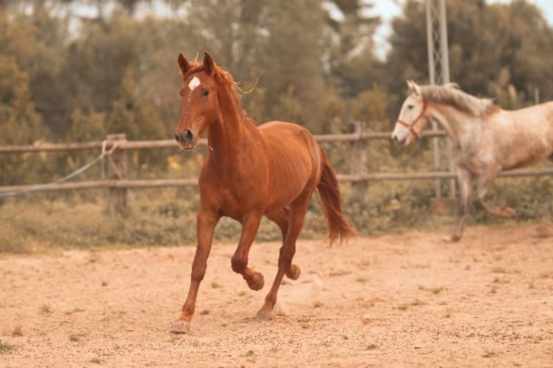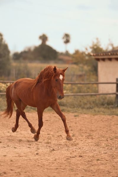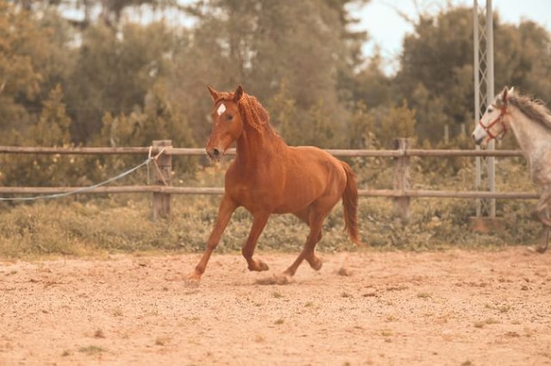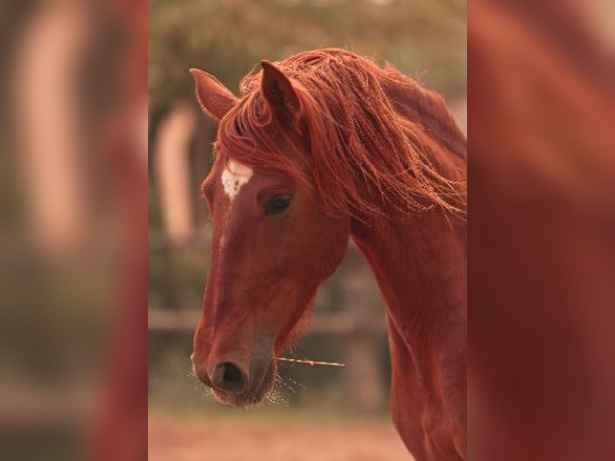 Vater ist Fer Bonachon de EDA, mütterlicherseits ein Enkel von Fer Cartucho. Bildhübscher und ausdrucksstarker Fuchshengst. Direkt vom Züchter. Wächst artgerecht in der Herde auf.