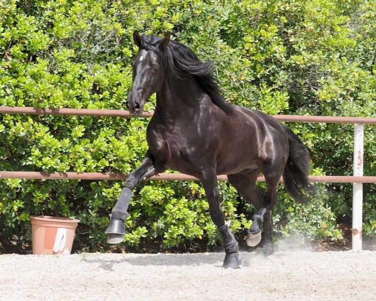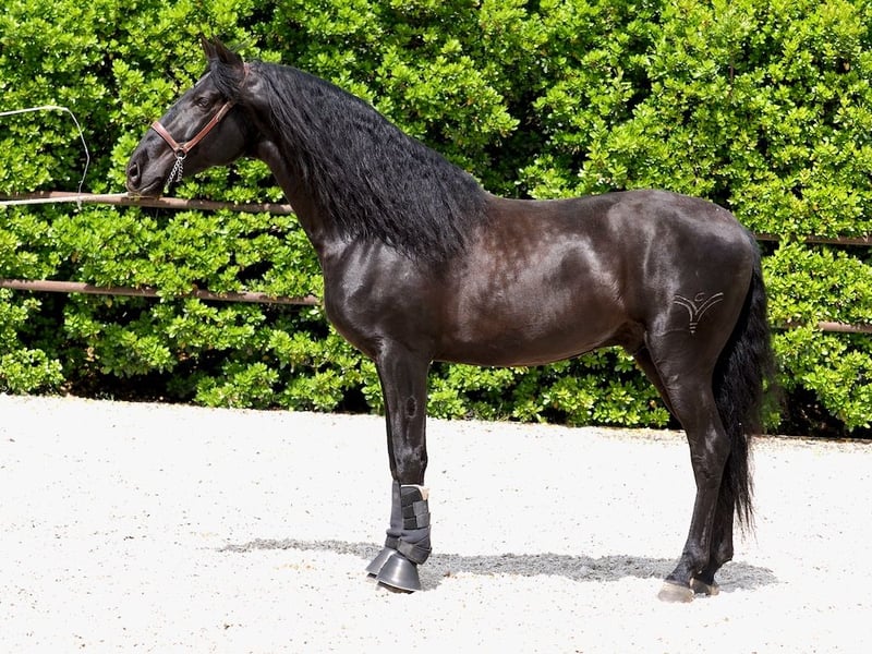 We present a black Pure Spanish Horse (PRE) with outstanding potential, standing at 1.65 m, combining beauty, functionality, and proven genetics in a single specimen. Sired by the renowned Trovador IX, from the prestigious Valdeolivas stud, this horse inherits a bloodline that has consistently demonstrated its ability to transmit quality, movement, and temperament within the breed. On the dam’s side, this strong genetic foundation is further reinforced with functional lines, contributing elasticity, balance, and a clear aptitude for work. This is a horse that has already begun to stand out in the arena, having participated in morphological competitions where it has achieved top positions in movement classes—an excellent indicator of its natural quality and future development towards higher levels. From a sport perspective, he offers three high-quality gaits, particularly notable for his mechanics, scope, and ability to collect, making him a strong candidate for classical dressage. He is especially appealing for riders aiming to progress towards medium to high levels with a horse that combines power, mindset, and genetics. Morphologically, he presents a harmonious, breed-typical, and highly attractive conformation, with presence, correct proportions, and an image that does not go unnoticed—an increasingly valued trait both in competition and in the market. Additionally, he offers highly sought-after qualities: * Exceptional temperament: balanced and cooperative * Easy handling and a willing attitude towards work * Piroplasmosis negative, facilitating international trade For all these reasons, he is not only a solid sport horse prospect but also an excellent stallion candidate, ideal for breeders looking to add functionality, movement, and genuine quality to their breeding program. A horse that not only meets expectations but has the attributes to stand out.