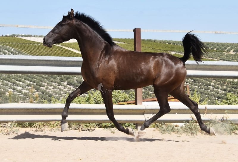 carácter amable, curioso, sociable, lungido, está siendo montado, buenos movimientos, color especial, preñada del semental PRE Bayo Perla Hidalgo de Fuerza, se espera la cría para agosto de 2026, ascendencia: Hnos Gonzalez Gallego, Francisco Diaz Gonzalez, Yeguada Militar, Yeguada el Bayo www.elegante-andalusier.com