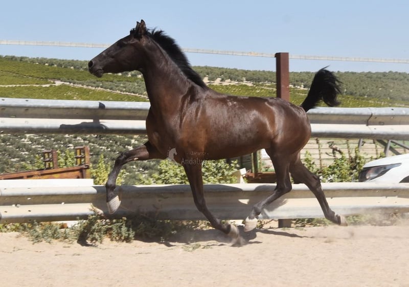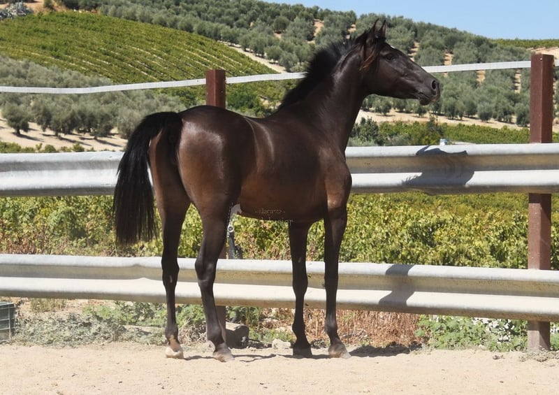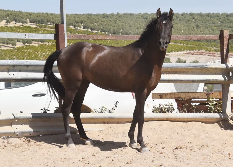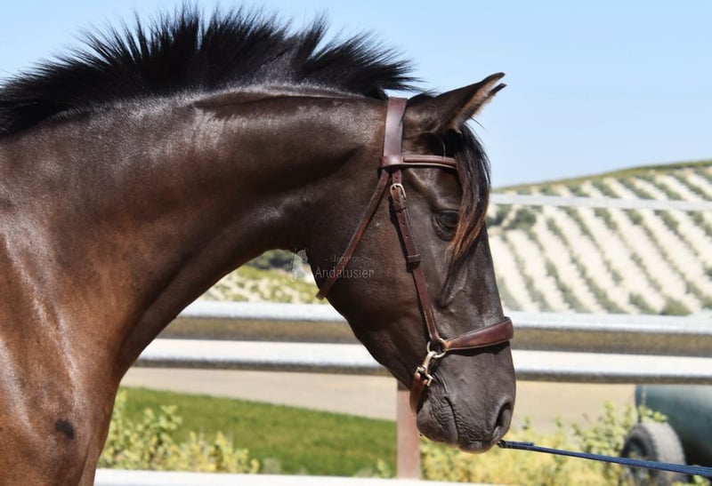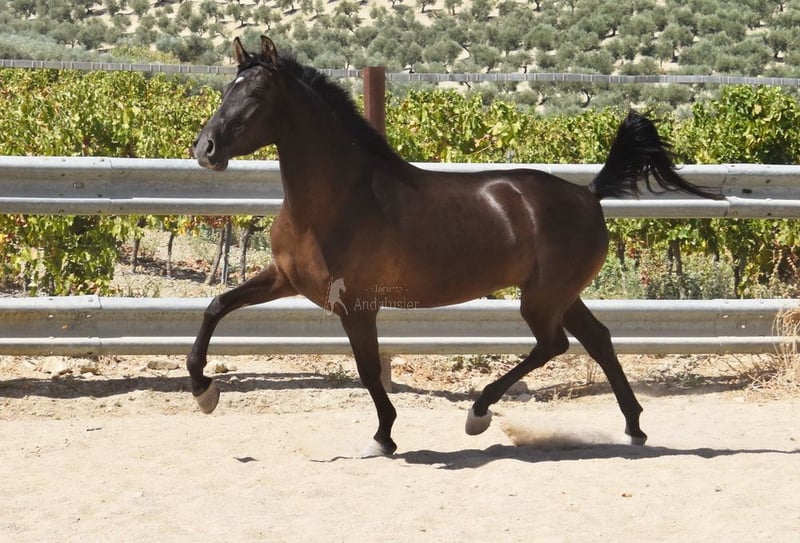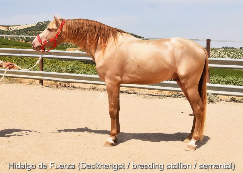 caractère doux, curieux, attaché aux humains, longé, commence à être monté, bonnes allures, couleur spéciale, pleine du étalon PRE Bayo Perla Hidalgo de Fuerza, le poulain est attendu pour août 2026, pedigree : Hnos Gonzalez Gallego, Francisco Diaz Gonzalez, Yeguada Militar, Yeguada el Bayo www.elegante-andalusier.com