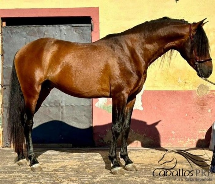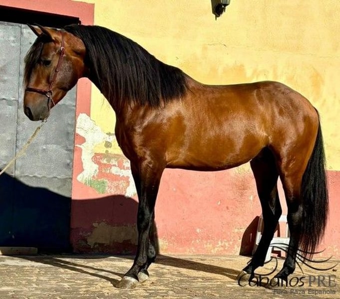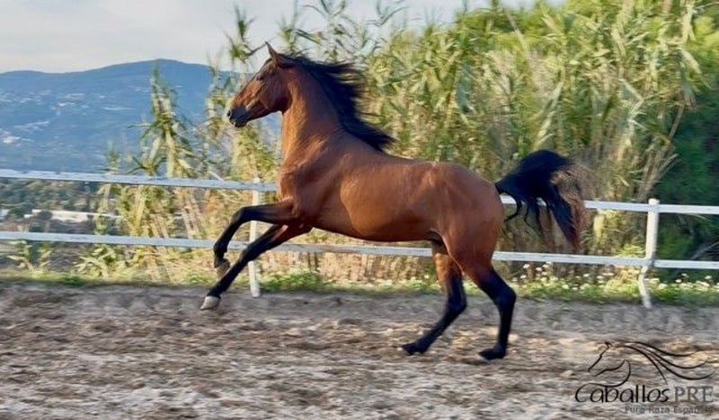Tormento es un semental PRE de aproximadamente 1,59/1,60 m, equipado con movimientos excelentes. Nació en julio de 2021. Tiene un carácter muy dulce y cariñoso, y le encanta cuando sus cuidadores se dedican a él. Conoce la silla y las bridas, y actualmente se está preparando para su iniciación en la monta. Durante el trabajo con la silla y las bridas, se muestra muy tranquilo y coopera de manera muy obediente. Siempre es colaborador, completamente honesto y confía en sus cuidadores. En el establo no muestra ningún comportamiento de semental. No obstante, si se desea, podría ser acortado en el lugar. Seguramente sería muy interesante para la disciplina de la Working Equitation, pero también para un jinete de doma o de ocio con aspiraciones. Si desea más información sobre él, por favor, póngase en contacto con nosotros por teléfono. Con mucho gusto le enviamos más vídeos tras una conversación personal. Le rogamos que tenga en cuenta que no respondemos a solicitudes anónimas. El transporte puede organizarse a nivel mundial. La visita, previa cita, es posible en cualquier momento.