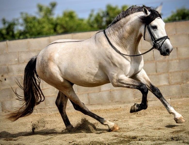 The exceptionally handsome buckskin gelding Albero is looking for his forever home... This extraordinary young gentleman displays beautiful movement and has a very calm and composed character. He impresses with his pleasant temperament, as he is currently ridden and worked with exclusively by a teenage rider. It is likely that he may turn grey in the future. He is a promising young talent for ambitious riders who value quality and potential. A pre-purchase examination is currently being arranged. If needed, he can also be gelded. He has a passport but without pedigree documentation. If you are interested or have any further questions, please feel free to contact me. Kindly include your phone number so I can get back to you as quickly as possible. We have a wide selection of various Spanish horses with different levels of training. If you have a specific horse in mind, we will do our best to find your dream horse.