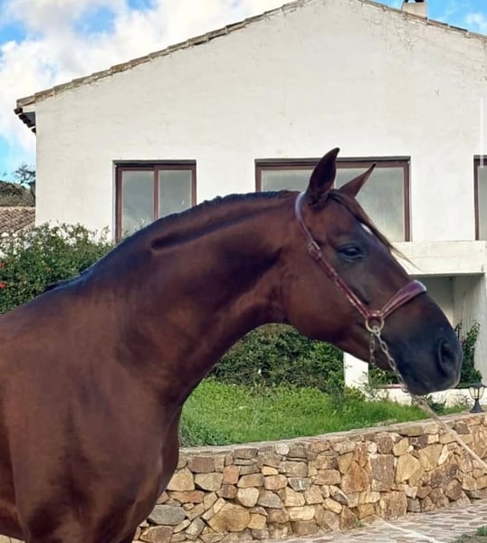 BREED: PURA RAZA ESPAÑOL DOB: 2020 Height: 1.65 meters Gender: stallion Level: advanced dressage level solid 3rd level with flying changes, very easy to ride and to do all exercises. Ideal for investors. Pirofree based and born in Senillosa stud. Top bloodlines on him from sire line DESEADO XXIX x PANADERO VII. Dam line by SENI URANIO Worldchampionship. CALIFICADO Bloodlines. Pirofree based - clean xrays on file 12,000€ + tax 21% tax