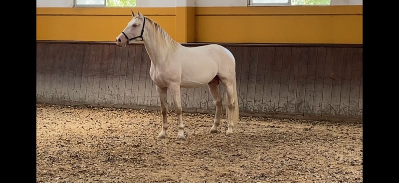Perlen-Exemplar von 2021. Er ist ein Pferd mit gutem Charakter. Er fängt gerade mit der Dressur an, er wird bereits geritten. Er hat drei gute Gänge und Veranlagung für die Arbeit. Zögern Sie nicht und fragen Sie nach ihm!