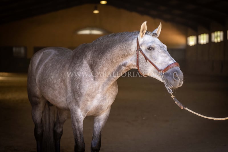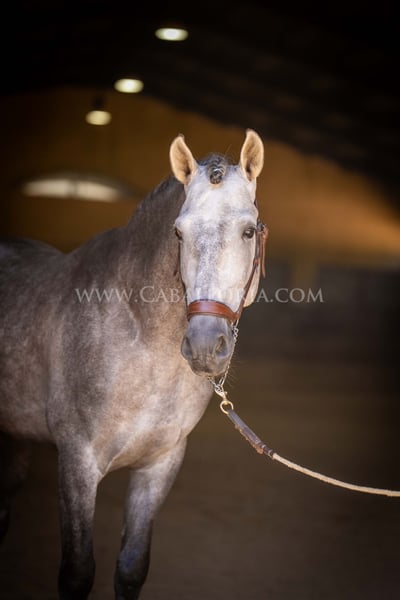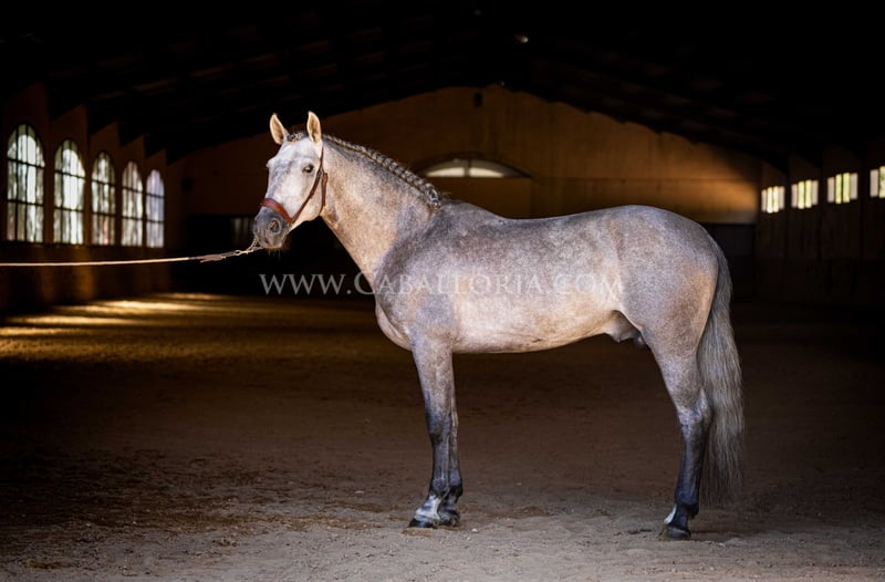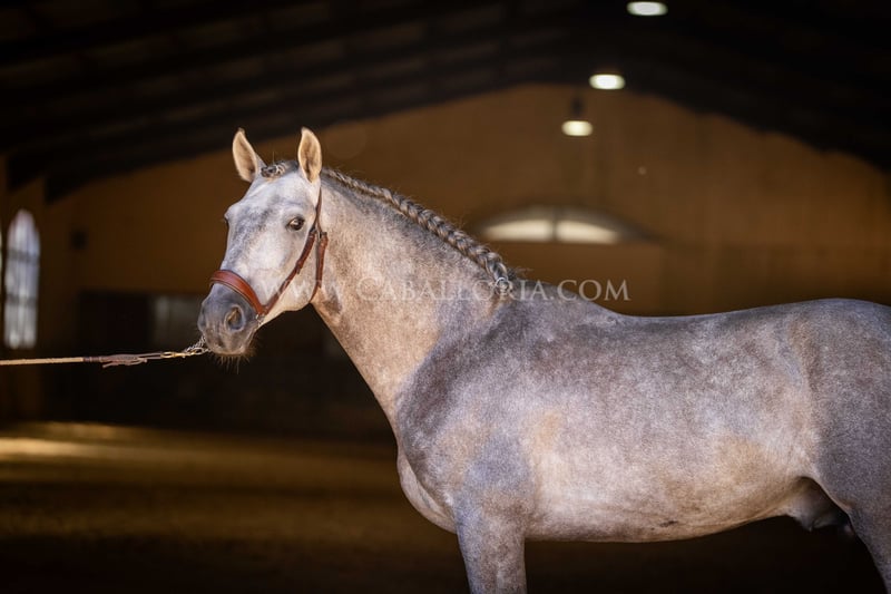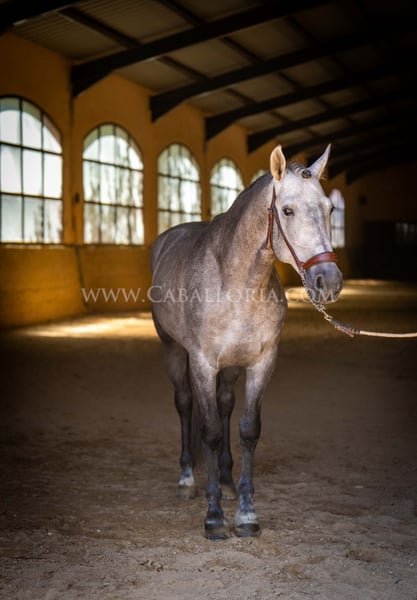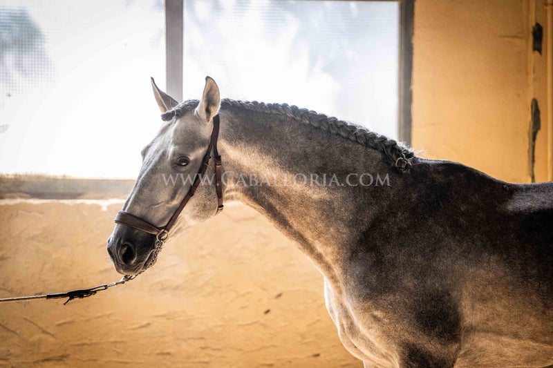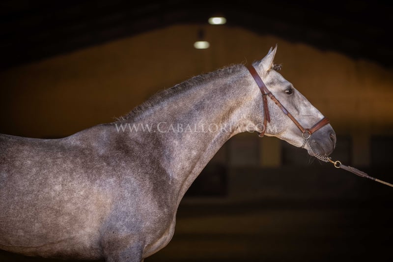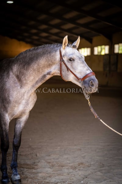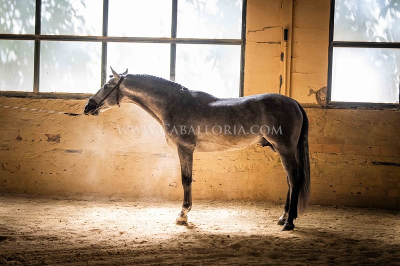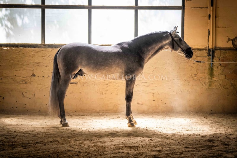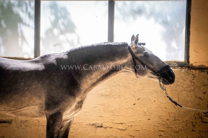 Name: Niger Date of birth: 06.02.2019 Height: 1.59 m Training level: Level 3/4 (Level M/L in Germany) ANCCE classification: Reproductor básico (licensed) Niger is a very cooperative and uncomplicated PRE stallion with a typical, noble Cartujano head and excellent movement. Niger is currently at M/L level and is always very hard-working. He likes to present himself and is also very playful. His charming nature and his reliability in dressage as well as in daily handling are particularly noteworthy. He has 2 small warts, one on the saddle and one on his belly, which are currently being treated internally so that they fall off on their own and do not return. These have not affected his riding so far. There are no melanomas. Information on request! *All visual content, including photos and videos, presented by Caballoria S.L. are protected by copyright. Any use of these materials without the express written permission of Caballoria S.L. is strictly prohibited.
