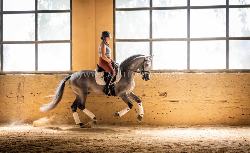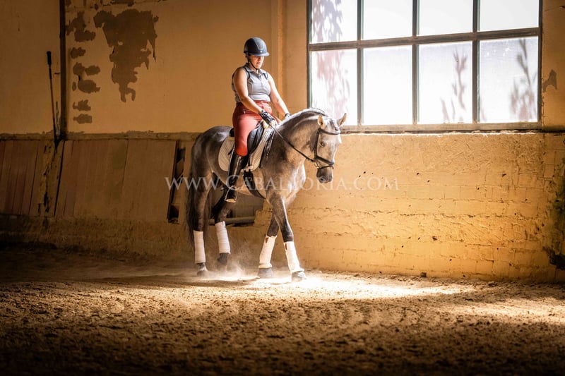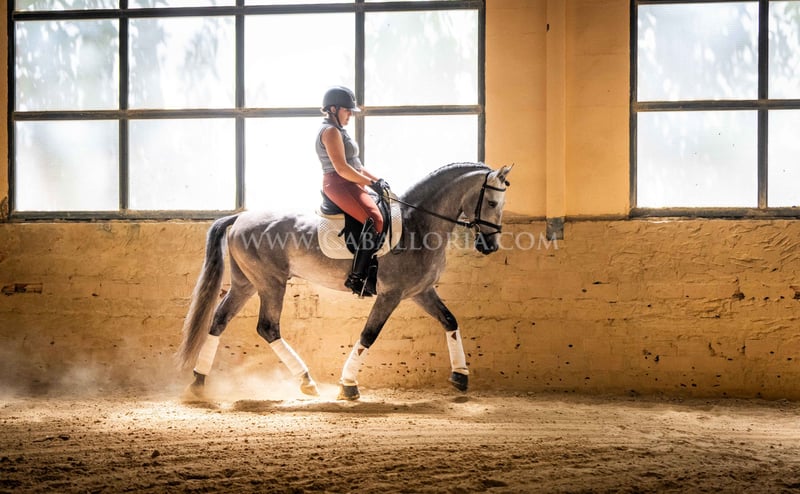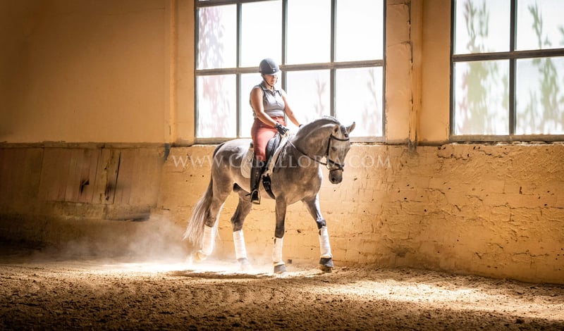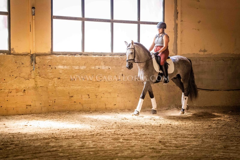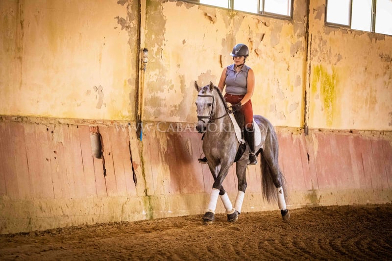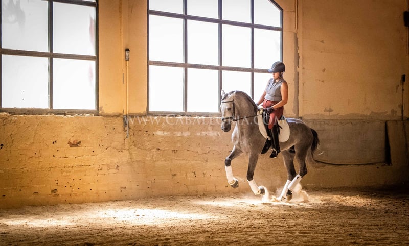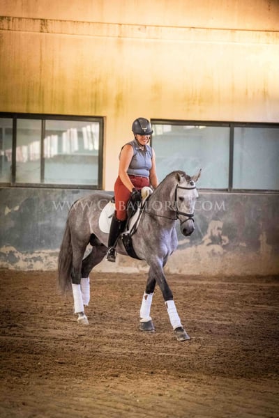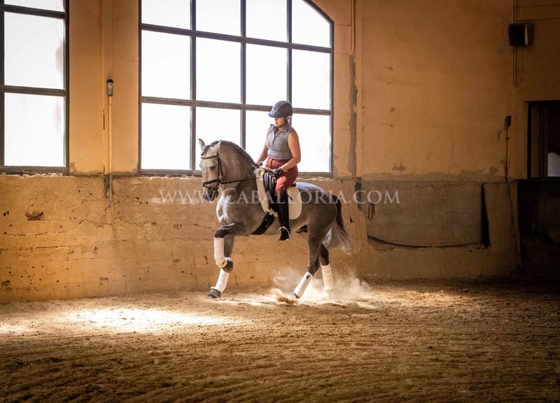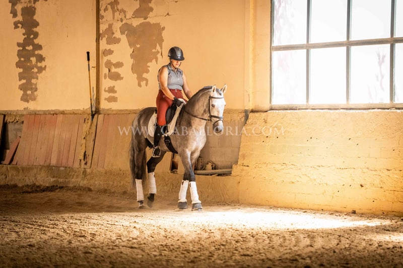 Name: Niger Geburtsdatum: 06.02.2019 Größe: 1.59 m Ausbildungsstand: Niveau 3/4 (Level M/L in Deutschland) ANCCE Klassifizierung: Reproductor básico (gekört) Niger ist ein sehr kooperativer und unkomplizierter PRE Hengst mit einem typischen, edlen Cartujano-Kopf und hervorragendem Gangwerk. Niger ist aktuell auf dem Stand M/L und zeigt sich stets sehr fleissig. Er präsentiert sich gerne und ist auch noch sehr verspielt. Besonders hervorzuheben sind seine charmante Art und seine Verlässlichkeit sowohl in der Dressur als auch im täglichen Umgang. Er hat 2 kleine Warzen, eine auf der Sattellage und eine am Bauch, die aktuell durch eine innere Kur behandelt werden, sodass sie von alleine abfallen und nicht wiederkehren. Diese beeinträchtigen das Reiten bisher nicht. Melanome sind nicht vorhanden. Informationen gerne auf Anfrage! *Alle visuellen Inhalte, einschließlich Fotos und Videos, die von Caballoria S.L. präsentiert werden, sind urheberrechtlich geschützt. Jegliche Verwendung dieser Materialien ohne ausdrückliche und schriftliche Genehmigung von Caballoria S.L. ist strengstens untersagt.