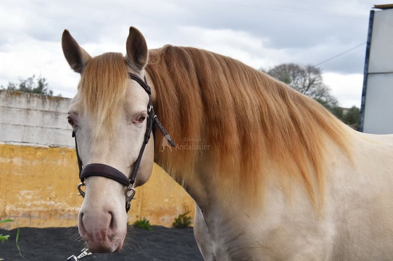 lief karakter, in de basisgangen gereden, Spaanse stap, barok, zeer comfortabel, bankpaard, speciale kleur, PRE Bayo Perla (CrPrl) met papieren, goede bewegingen en afstamming, afstamming: Salvador Miras Gomez, Paco Marti, Yeguada la Llana, Ururopa Gaucho III is gekwalificeerd www.elegante-andalusier.com