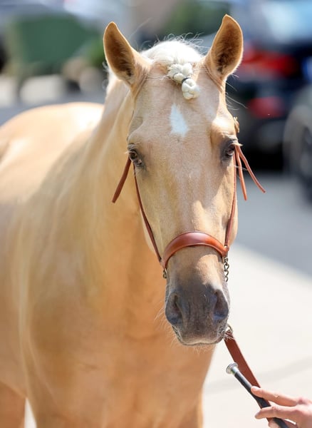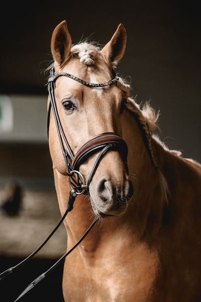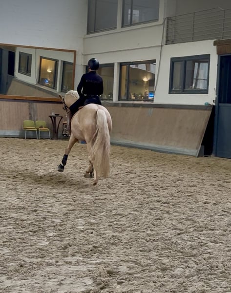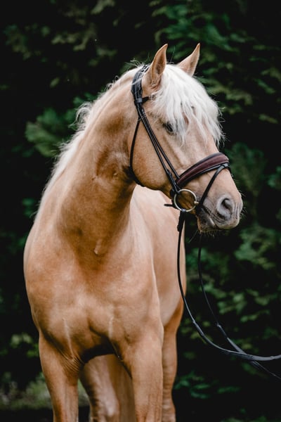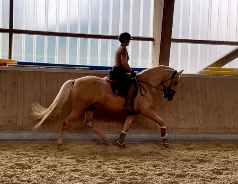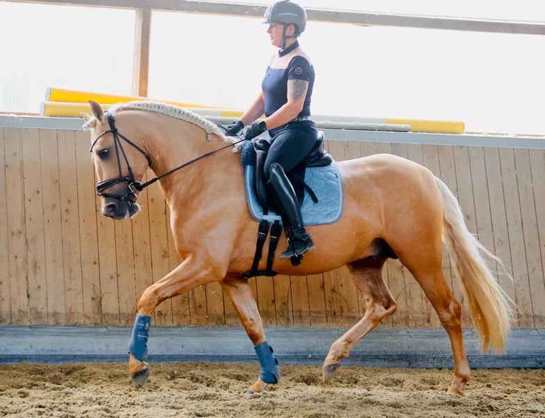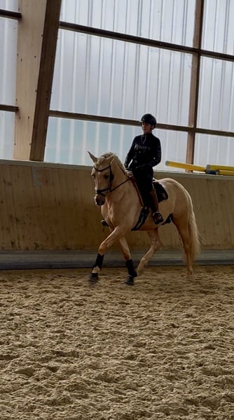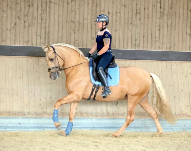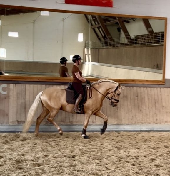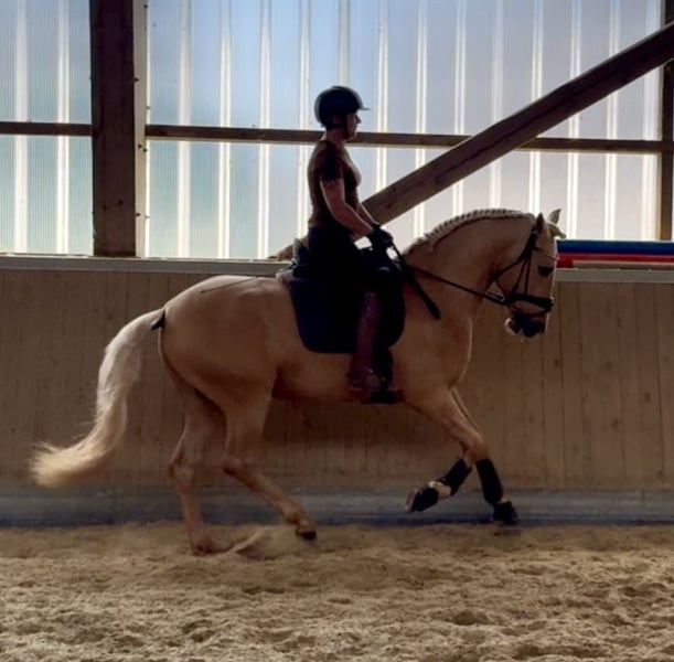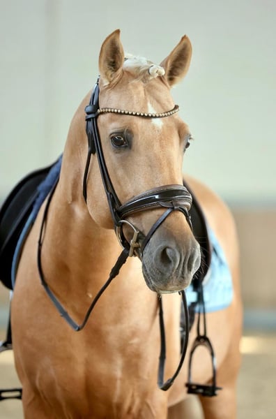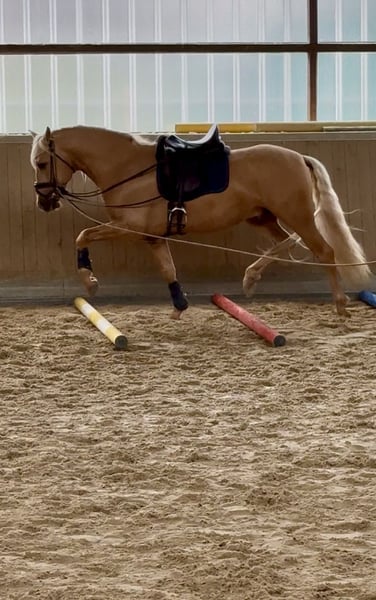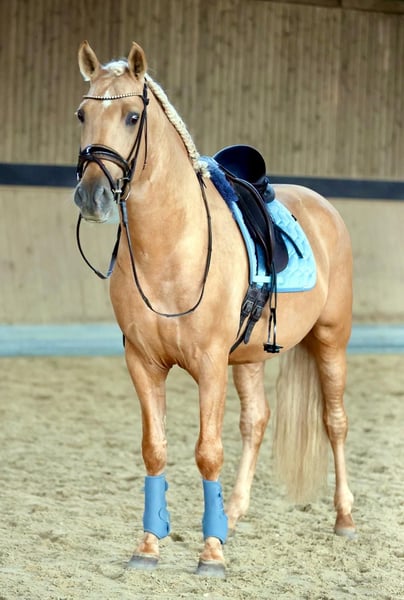This extraordinary Palomino stallion has been with us since he was 2 years old and has been started under saddle and trained according to his age. He is currently at a safe A-level, and we have now begun working on lateral movements and canter on the outside. Dulzon is always motivated to work and is an absolute sunshine. Dulzon is a safe and balanced horse. He is uncomplicated to handle, trailers well, is good with the farrier, enjoys rides in pairs, and is familiar with the lungeing and water treadmill - he knows all these things. Dulzon has no stallion behaviors. For inquiries, please contact only via WhatsApp at 0171-3776471. Videos are always created on request, as his training level is constantly evolving.
