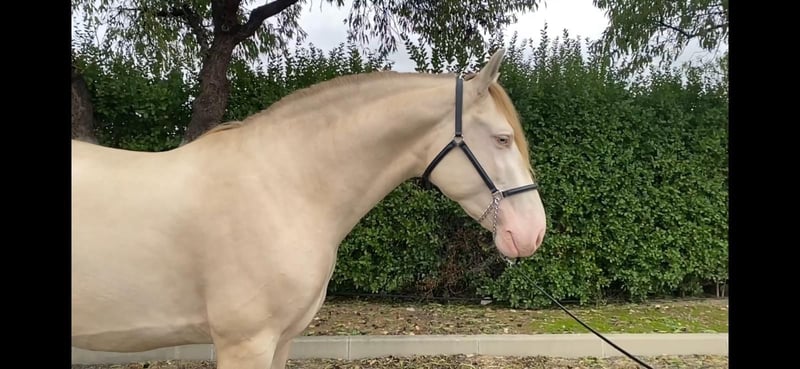 Zafiro is a pearl stallion born in 2020. He has a very good character for his young age and good gaits, highlighting the canter. Always willing to work and easy to learn new exercises. Good level of dressage, making backs and croup inside, half-pass, starting with flying changes. Do not hesitate to come and meet him!