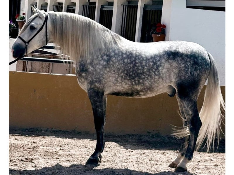 Ein hervorragendes spanisches Pferd, geboren im Jahr 2020, mit einer Größe von 167 cm. Aus einer Linie außergewöhnlicher Blutlinien stammend, vereint dieses Pferd Schönheit, Morphologie und Charakter in einem einzigen Exemplar. Väterlicherseits ist er ein Enkel des berühmten Hengstes Digital, ein anerkannter und prestigeträchtiger Zuchthengst in der Pferdewelt, bekannt für seine genetische Qualität und seinen Einfluss auf die Verbesserung der Blutlinien. Die Nachkommen von Digital zeichnen sich durch Adel, Ausdauer und exzellente Bewegungen aus – Eigenschaften, die sich in diesem Pferd widerspiegeln. Mütterlicherseits stammt er von Impaciente II ab, einem Elitehengst aus dem renommierten Gestüt Hnos Camacho Benítez. Körperlich ist dieses Pferd ein wahres Vorbild des spanischen Pferdes, mit einer beeindruckenden Morphologie, die Harmonie, Eleganz und Stärke vereint. Sein Körperbau zeigt ein perfektes Gleichgewicht mit eleganten Linien und idealen Proportionen. Sein Charakter ist außergewöhnlich: ruhig, intelligent und kooperativ – was ihn im Umgang und Training besonders angenehm macht. Dieses Pferd vereint Schönheit, genetische Qualität und Charakter und ist somit ideal für die Zucht, Veranstaltungen oder Ausstellungen geeignet.