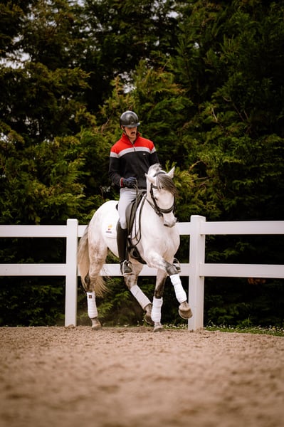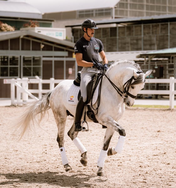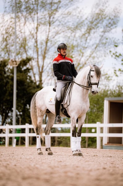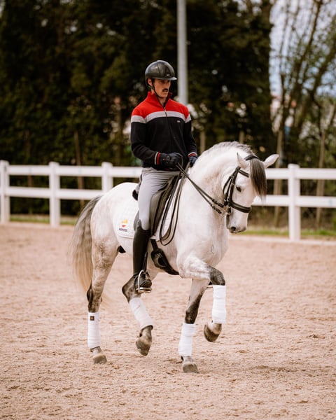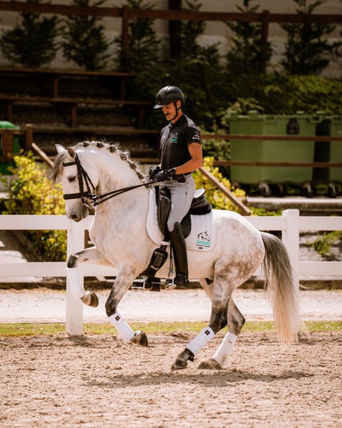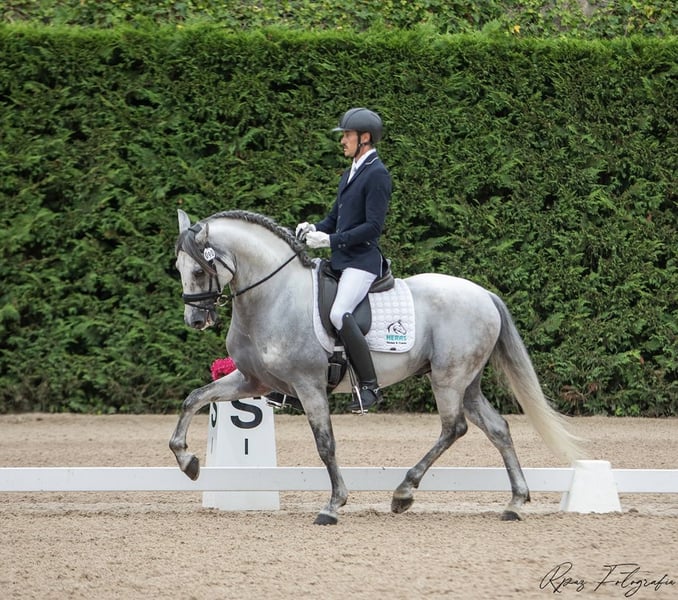 Caballo PRE de 8 años, entero, con muy buen carácter y actitud para el trabajo. Muy buenos movimientos y gran potencial para la doma clásica. Actualmente trabajando para confirmarse en nivel 4 de doma clásica.