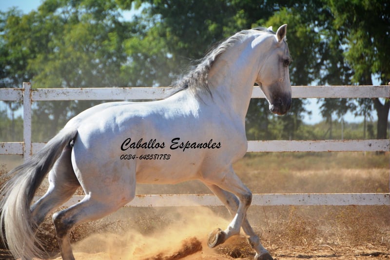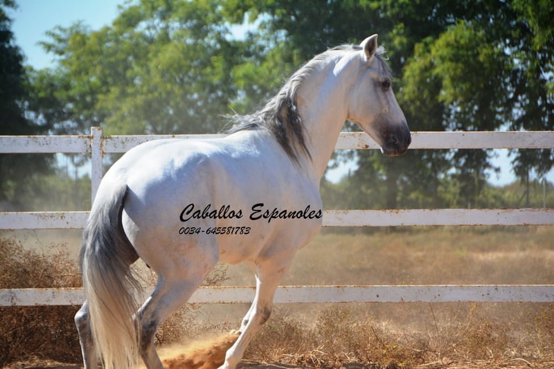 Dieser wunderschöne, gekörte PRE Hengst kommt in einer barocken, eleganten Aufmachung daher. Er steht auf einem korrekten, stabilen Fundament. Er ist basisgeritten, auf dem Platz, wie im Gelände. Der Hengst ist auch einspännig gefahren Im Freilauf und unter dem Sattel zeigt er gerne sein drei guten, ausdrucksstarken Grundgangarten. Der Schimmel ist ein fröhlicher und neugieriger Hengst, aber immer brav und gut erzogen. Er hat ein sehr gutes Papier - stammt aus dem Hause Eucalipto Bei Interesse stehe ich gerne für weitere Informationen und eine Besichtigung zur Verfügung. Das Pferd wird im Auftrag verkauft. Sie kann bei uns bin Beritt bleiben. AKU kann kurzfristig organisiert werden. Internationaler Transport.