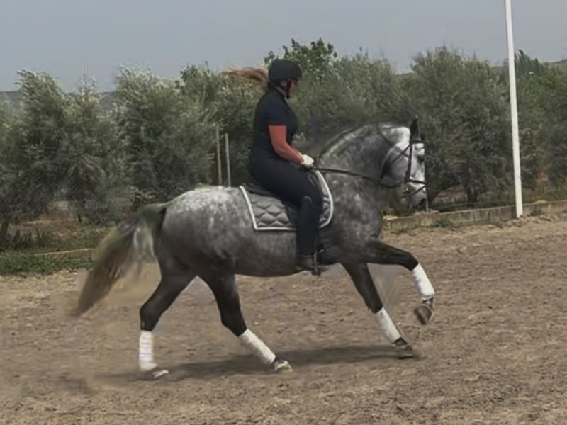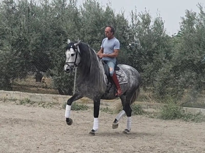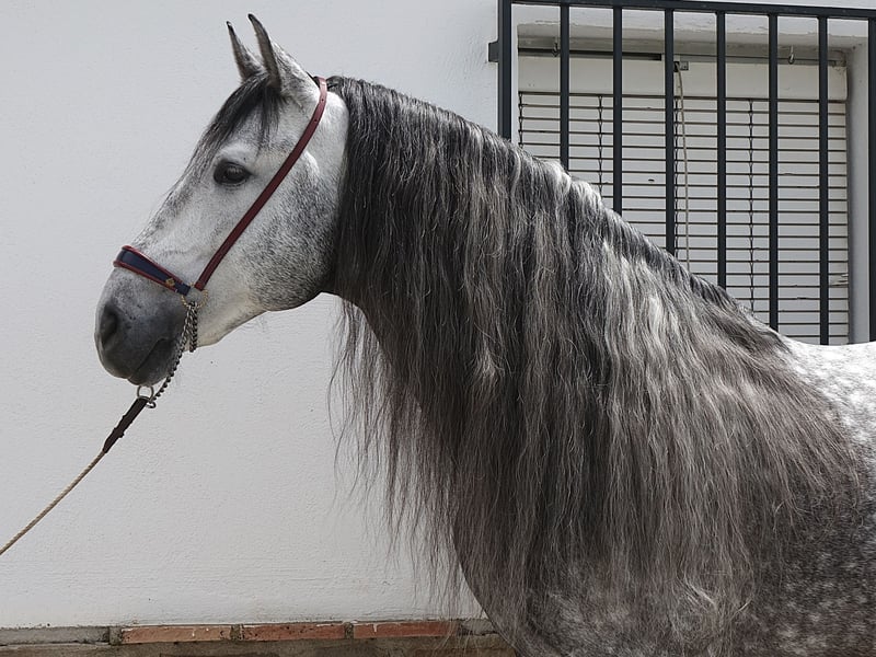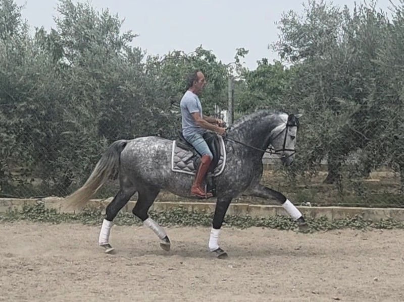 Gallego, PRE stallion born 2018 and ap. 166 cm. Very sweet and kind stallion who's always fun to ride, he's intelligent and learns everything incredibly fast. He's comfortable to ride with a soft mouth and nice movements. Gallego does all the lateral exercisers, flying changes, piaffe, Spanish walk and playing with passage. He's also trained to draw a carriage both solo and with more horses. He has participated in Ferias both being ridden and with a carriage. He's safe to go hacking with, used to both nature and villages with traffic etc. Gallego is located in southern Spain and we help with all the steps in the buying process. Read more about us at www.cthorsesales.com Contact: info@cthorsesales.com