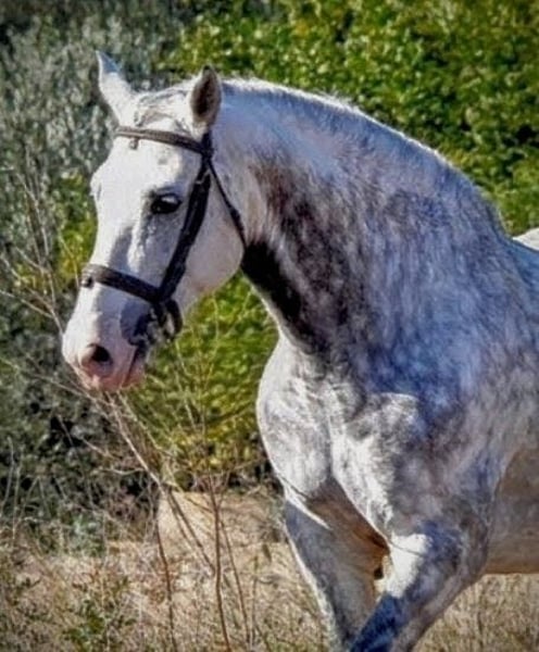 KALAMBRUJO... A very special gentleman in search of his *forever home*. This impressively beautiful PRE stallion is 7.5 years old, stands 1.58 meters tall, and is muscular. He captivates not only with his friendly and human-oriented nature but also as an overall striking presence. With his exceptionally comfortable gaits, he is perfectly suited for Working Equitation, dressage, and recreational riding. His outstanding pedigree (Plaza de Armas) already hints at his high quality and his incredibly lovable character. The stallion is well-trained, completely reliable in handling, and an excellent choice for riders seeking a versatile partner. He is primarily ridden in the terrain, bringing 100% safety and routine to every ride. In the riding arena, he works convincingly and is pleasant to ride in all gaits. He already masters simple lateral movements at walk and trot. His very agreeable nature makes him an ideal companion for trail rides, walks, and relaxed training sessions. KALAMBRUJO is ideally suited for the ambitious leisure rider, for those returning to riding, and even for beginners, as he provides security and a pleasant riding experience. If you like this charming grey, please contact me with your phone number so I can get in touch with you as soon as possible. We always have horses with different levels of training available. All horses come from private, loving owners. For inquiries or further information, please feel free to contact me. A personal meeting is always possible!