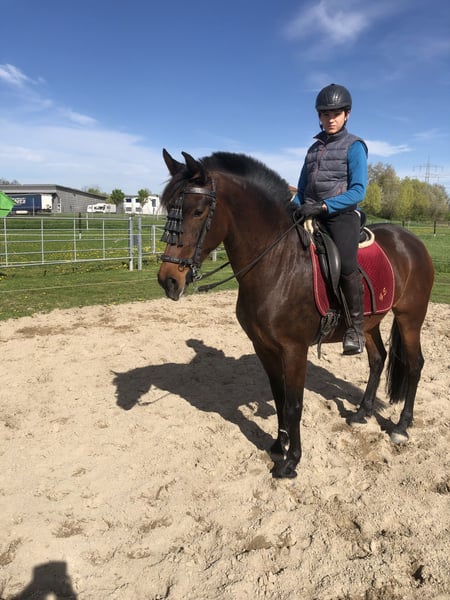 Piękna 2-letnia klacz z doskonałymi podstawowymi chodami i wspaniałą prezencją na sprzedaż! Ronda ma kolor kasztanowy (brązowy). Urodziła się w małym, rodzinnym stadzie hodowlanym w Bahlingen am Kaiserstuhl i dorastała w stadzie. Niestety, obecnie ma problemy z przednią nogą podczas biegania po twardym podłożu z powodu kontuzji. Jest już przyzwyczajona do kantara i wiązania. Od urodzenia jest również przyzwyczajona do kowala i była regularnie podkuwana. Z powodu kontuzji ma już doświadczenie z podkowami. Dla tej klaczy życzę sobie miłośnika koni, dla którego jazda nie jest priorytetem i który da jej czas na rozwój, którego potrzebuje. Nadaje się do hodowli i ma oryginalne papiery ANCCE. Ojciec Dominante MP również mieszka w stadzie hodowlanym i wyróżnia się dziedziczeniem swoich doskonałych chodów. Ponadto ma niezwykły charakter bez ogierowych manier. Regularnie pracuje z klaczami w terenie i na placu. Matka Obedienta JF to piękna klacz w kolorze kasztanowym (brązowym). Opuszczała stado hodowlane w zeszłym roku jako koń naukowy dla osoby wracającej do jazdy. W przypadku zainteresowania proszę o kontakt telefoniczny (01703484010), a prześlę Państwu więcej zdjęć i filmów.