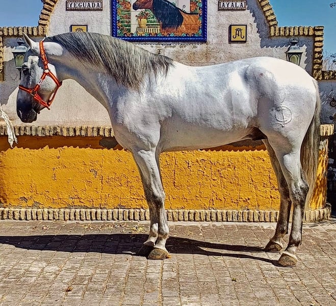 Dieser beeindruckend schöne PRE Hengst, möchte gern in sein FOR EVER HOME vermittelt werden...🏡 Mit seinen 7 Jahren und einer Größe von 1,66 m, ist er die perfekte Wahl, für Leute die mehr wollen. Dieser Gentleman hat- trotz das er Hengst isr- einen überragend lieben Charakter und ein unheimlich angenehmes Temperament. Unarten jeglicher Art,sind ihm ein Fremdwort. Der schöne Schimmel hat wunderschöne weiche und elastische Bewegungen und brav Basis geritten. Tadellos geht er am Einspänner und ist absolut zuverlässig . Im Gelände ist er die potentiale Lebensversicherung und voll trittsicher. Ob alleine ,oder in der Gruppe spielt keine Rolle. Auch wenn Stuten dabei sind, weiß er sich bestens zu benehmen. Im täglichen Umgang ist er ein wahrer Schatz - gut erzogen und sehr freundlich zum Menschen,ist er für den Freizeitreiter/ fahrer oder auch den anspruchsvollen. Reiter die perfekte Wahl. Er lässt keine Wünsche offen. Auch zeigt er keinerlei Hengstmanier. Auf Wunsch kann er vor Ort gelegt werden. Ebenso kann auf eigene Kosten gerne eine Ankaufuntersuchung mit Röntgen vorgenommen werden. Wem dieser liebenswerte und bildschöne junge Mann gefällt, meldet sich bitte mit Telefonnummer, damit ich schnellstmöglich Kontakt zu Euch aufnehmen kann. Unter Umständen ist es möglich, das Mehrwertsteuer entstehen könnte. Das wird aber einzelfallabhängig immer geprüft. Eine Ankaufuntersuchung kann sehr gerne auf eigene Kosten gemacht werden. Sehr gerne arrangieren wir den Transport für Euch 🚛 Standort Spanien Nähe Sevilla Wir haben eine große Auswahl an Pferden aller Kategorien. Vom Fohlen bis zum Gran Prix Kracher, ist alles vertreten. Auch Sonderfarben wie Palomino und Buckskin .