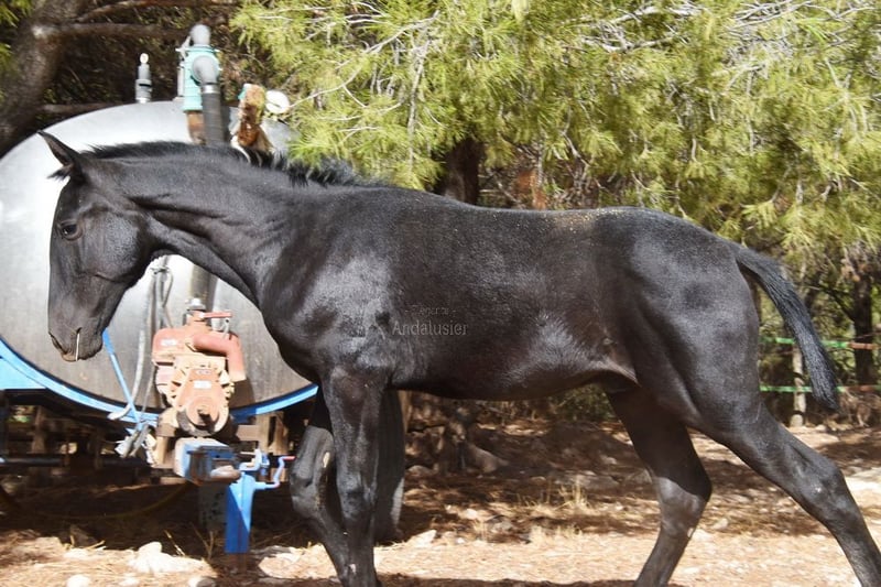 lieber Charakter, roh, steht mit seiner Mama draußen, groß, gute Bewegungen und Abstammung, Abstammung: Terry, Yeguada Militar, Yeguada las Arenas, Francisco Olivera Bermudez, hat mehrere qualifizierte Vorfahren www.elegante-andalusier.com