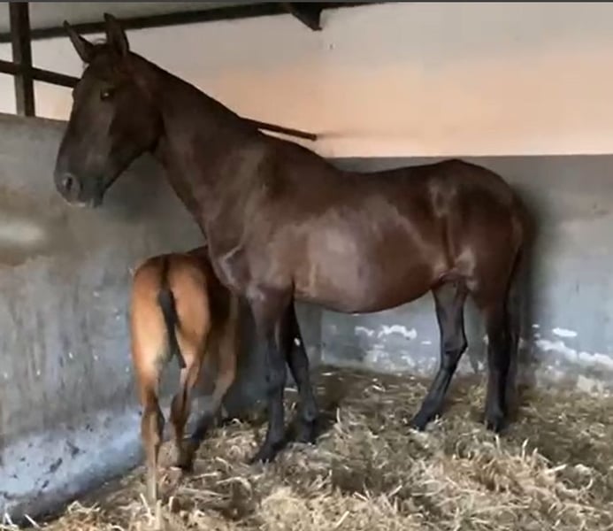 OPPORTUNITY FOR SALE: BLACK MARE IN FOAL to a top-level stallion, WITH ALL DOCUMENTATION IN ORDER AND REGISTERED IN THE GENEALOGICAL BOOK OF THE PRE -ANCCE, UP TO DATE ON ALL VACCINATIONS, trained in hand, height of the mare 1.68m, very noble, SPECTACULAR MOVEMENTS, great mother giving birth every year, fully productive, producing very good quality foals, VERY GOOD GENETICS, LOPEZ MONIX-GRANDA. If you want a high-quality mare, black with great height, in foal, producing competition offspring, this is your mare. CALL NOW BEFORE SHE IS SOLD!