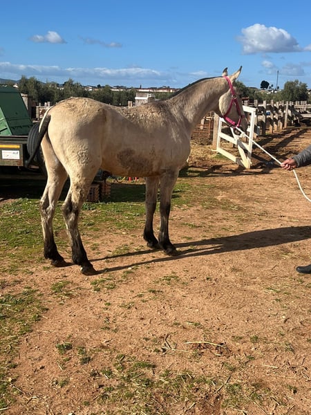 Zum Verkauf steht eine wunderschöne 2-jährige PRE (Pura Raza Española) Stute in der seltenen und begehrten Sonderfarbe Buckskin. Diese junge Dame überzeugt nicht nur durch ihre außergewöhnliche Farbe, sondern auch durch ihren typvollen PRE-Charme: elegante Bewegungen, ein ausdrucksstarker Kopf und ein korrekt gebautes Exterieur machen sie zu einem echten Blickfang. 🐴 Details: Rasse: PRE (Pura Raza Española) Geschlecht: Stute Alter: 2 Jahre Farbe: Buckskin (Sonderfarbe) Stockmaß: altersentsprechend im Wachstum (aktuell 1,47 cm) Charakter: freundlich, menschenbezogen, neugierig ⭐ Besonderheiten: Sehr typvoller PRE-Look Ruhiges, ausgeglichenes Temperament Altersgerecht aufgezogen in Herdenhaltung Kennt Halfter, Führen Diese Stute bringt alles mit, um später ein tolles Freizeit-, Dressur- oder Zuchtpferd zu werden. Bei ernsthaftem Interesse freue ich mich über eine Nachricht. Videos und weitere Infos gerne auf Anfrage.