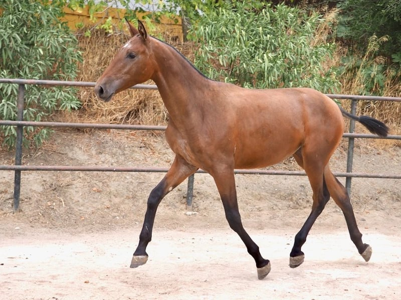Diese PRE-Stute, 2024 geboren, zeichnet sich durch eine elegante Erscheinung und eine Schulterhöhe von 160 cm aus und bietet von jung an eine eindrucksvolle Präsenz. In kastanienbraunem Fell und gut proportionierter Figur zeigt sie eine harmonische Morphologie, die Qualität und Klasse verrät. Ihre fließenden Bewegungen deuten auf eine starke Leistung in der Dressur hin, mit der Fähigkeit, dank ihres guten Gleichgewichts und ihres unbestreitbaren natürlichen Talents rasch Fortschritte zu machen. Sie stammt aus guten Zuchtlinien, was dem zukünftigen sportlichen und züchterischen Potenzial zusätzlichen Wert verleiht. Ihre robuste Abstammung äußert sich in Ausdauer, ausgewogenem Temperament und Veranlagung, hochkarätige Bewegungen zu entwickeln – Eigenschaften, die sie zu einer Stute mit großer Perspektive für klassische Dressur und die zukünftige Zucht PRE-Generationen machen. Hervorzuheben ist ihr Verhältnis von Qualität zu Preis, was sie zu einer attraktiven Option für Züchter und Reiter macht, die eine vielseitige Stute mit langfristigen Aussichten suchen. Ihr Charakter, der sich noch festigen muss, zeichnet sich als freundlich und gut zu handhaben aus, was Training und tägliche Haltung erleichtert. Zusammenfassend verbindet diese PRE-Stute aus 2024 Struktur, Bewegung und Herkunft und bietet eine vielversprechende Zukunft sowohl in der Dressurarena als auch in der Zucht – bei einem äußerst günstigen Verhältnis von Qualität zu Preis.