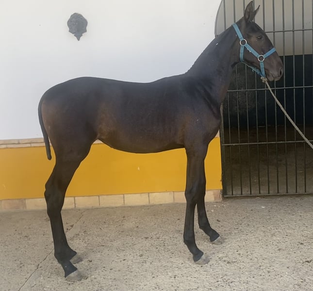 Zum Verkauf steht eine PRE-Stute – Dressur Pferd Außergewöhnliche Tochter von JAREÑO DE POVEDANO, einem REPRODUKTIONSSTÄNDIGEN Hengst mit hohem Potenzial im Dressursport. Zwei Jahre in Folge Bronzemedaille im Finale der Copa ANCCE im Grand Prix-Test. Enkelin von ENGAÑOSO VI, genetische Kategorie ELITE, und einer der besten Hengste, der Potenzial für die Dressur an seine Nachkommen weitergibt. Außerdem Nachkommin von SIMPÁTICO DE MILLAN III, dem jüngsten REPRODUKTIONSSTÄNDIGEN in der Geschichte Spaniens und einem der einflussreichsten Hengste der letzten Dekade, mit den meisten Nachkommen im Finale der PSCJ sowie bei der COPA ANCCE SICAB 2023 und 2024. Eine einzigartige Gelegenheit für Reitliebhaber! Zum Verkauf steht eine schöne PRE-Stute, geboren im Jahr 2024. **Eigenschaften:** - **Rasse:** Pura Raza Española (PRE) - **Geschlecht:** Stute - **Geburtsjahr:** 2024 - **Farbe:** Fuchs - **Stockmaß:** 168 cm - **Disziplin:** Dressur Diese Stute besticht durch ihre Eleganz und ihr Potenzial im Dressursport. Mit ihrem edlen Charakter und ausgeglichenem Temperament ist sie sowohl für erfahrene Reiter als auch für Einsteiger in diese Disziplin ideal. Für weitere Informationen und zur Vereinbarung eines Besichtigungstermins zögern Sie nicht, uns zu kontaktieren. Verpassen Sie nicht die Gelegenheit, diese beeindruckende Stute kennenzulernen!