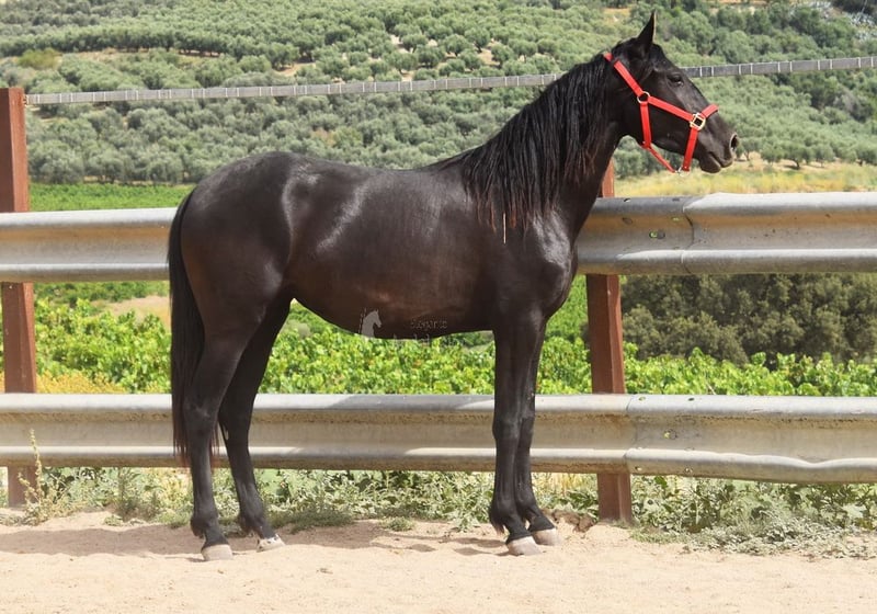 Caractère aimable, à l'état brut, vit dehors avec d'autres juments, bons mouvements et bonne lignée, Ascendance : Hnos Camacho Benitez, Gonzalo Valenzuela Ruiz, Escalera, l'arrière-arrière-grand-père Obcecado est qualifié www.elegante-andalusier.com