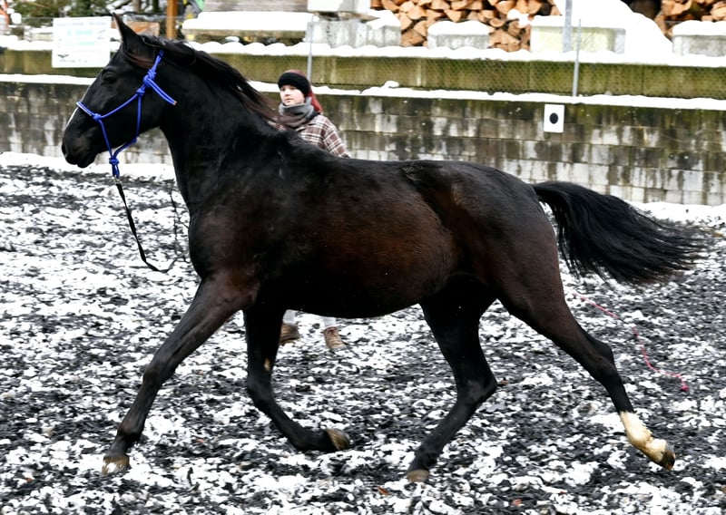Picara Arenosas es una Dama de Negro, una yegua de Pura Raza Española muy elegante, con una excelente evaluación y un trote espacioso, que también utilizará en la arena en el futuro. Picara nació el 07.12.2021 y por supuesto tiene papeles ANCCE completos. Es una yegua amistosa y ha crecido en una manada. Conoce el ABC del caballo joven. Picara es actualmente aprox. 153cm de altura y crecerá hasta ser aprox. 156-160cm de altura. Está desparasitada y vacunada regularmente, conoce al herrador y la conducción de remolques. Padre: Quebranto LXVIII Madre: Carbonero XXIX Estaremos encantados de presentarle a los caballos de lunes a sábado, un paseo de prueba en la arena o en el campo, lunging y trabajo de suelo es posible para que usted pueda conocer mejor a su caballo de ensueño. Esto cuesta 40 euros por vez y se reembolsa en el momento de la compra. Las clases de equitación reservadas no son reembolsables. Manuela Kubny www.pferdefachfrau.com