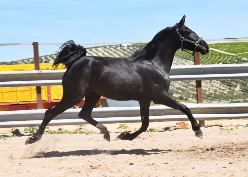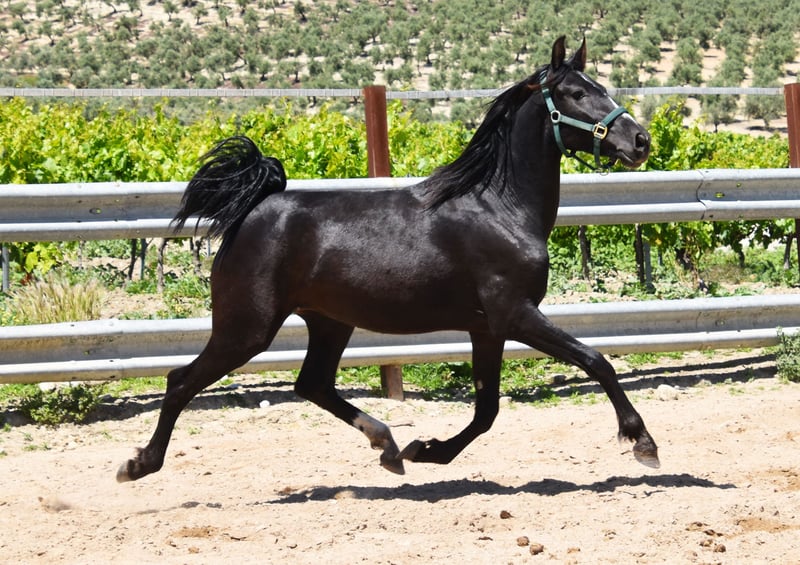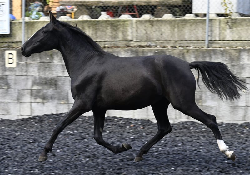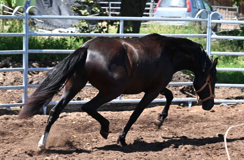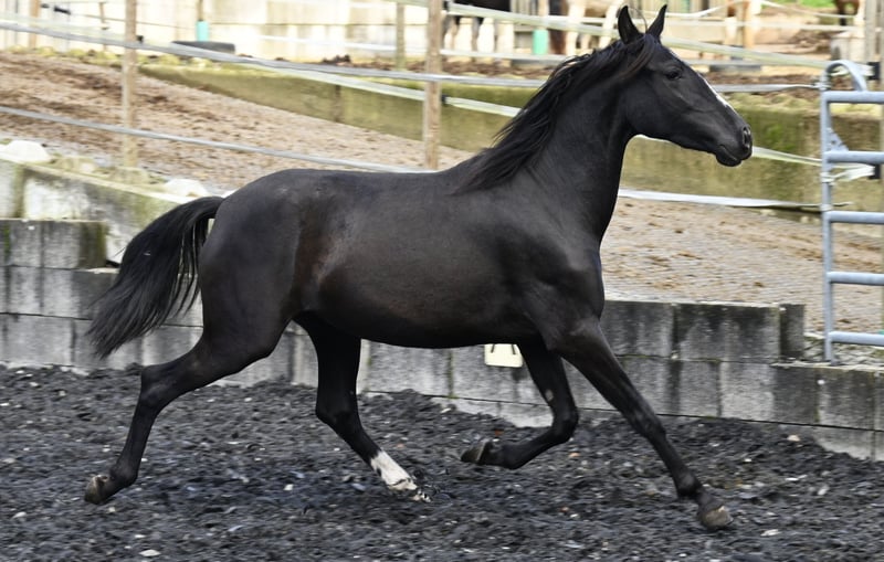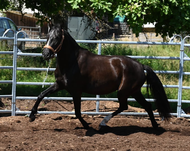 Picara Arenosas is a Lady in Black, a very elegant Pura Raza Española mare, with an excellent score and a spacious trot, which she will also use in the arena in the future. Picara was born on 07.12.2021 and of course has full ANCCE paper. She is a friendly mare and has grown up in a herd. She knows the young horse ABC. Picara is currently approx. 153cm tall and will grow to be approx. 156-160cm tall. She is regularly wormed and vaccinated, she knows the farrier and how to ride a trailer. Sire: Quebranto LXVIII Dam: Carbonero XXIX We will be happy to introduce you to the horses from Mon.-Sat. A test ride in the arena or in the field, lunging and ground work is possible for you to get to know your dream horse better. This costs €40 per time and is refunded on purchase. Booked riding lessons are not refundable. Manuela Kubny www.pferdefachfrau.com