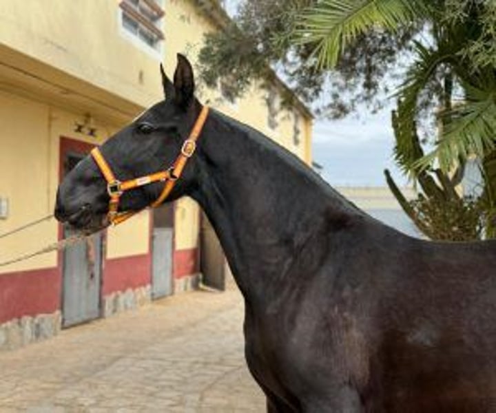 Exclusive BLACK Escalera mare at an exceptional price – Limited time offer! Are you looking for that unique mare who will not only conquer your heart, but also promises to become a star in the future? Today might just be your lucky day! Let yourself be surprised by this magnificent mare, still to be trained, whose docility and character will immediately captivate you. But what really sets it apart, beyond its wonderful temperament, it is his lineage ESCALERA. Yes, you read correctly. She comes from one of the most distinguished and renowned pedigrees of the PRE breed, which is a guarantee of quality and a future full of possibilities. And the best part is that we offer it to you at an incredible price. If you're worried about how you could get to know her and bring her to your place, especially if you're far away, don't worry, that's where our magic happens. At IberHorse, with more than 12 years of experience in facilitating the acquisition of horses remotely, we offer you a completely reliable intermediation service. We guarantee a comfortable and stress-free shopping experience, saving you from unnecessary travel costs. Through a tailor-made virtual experience, we provide you with all the information, photos and videos you need so you can make the smartest decision from the comfort of your home. In addition, we offer you the opportunity to decide how you wish to continue his training. You can choose to take her as she is and personally take charge of her training, or, if you prefer, we can take care of her training in Spain for the time you deem necessary with professionals in the sector. If you are interested in the latter option, just say so and we will let you know the prices. This is your chance to acquire a truly exceptional mare. Contact us for more details and prepare to welcome into your life an unparalleled companion who will undoubtedly become the pride of your stable. Ready to take the plunge? We are here to make the whole process easier for you. Let’s talk about it and make your equestrian dream come true!