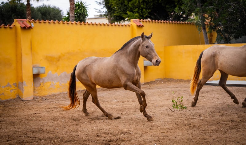 Zucht: Es wird noch eine der Zuchtstuten verkauft. Sie ist gekört und hatte bisher 1 Fohlen gehabt. Ihre Farbgenetik ist: ggAeEPrlPr. Sie hat Peralta, Yeguada Militar und Bohorquez in ihrer Abstammung / Mehr Infos auf Anfrage!
