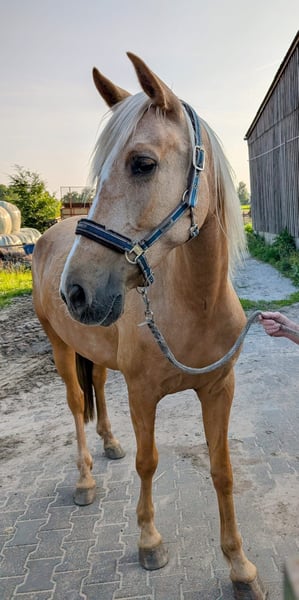 Diese wunderschöne PRE Stute in Sonderfarbe Palomino sucht nach ihrem Herzensmenschen. Sie hat einen ganz lieben, offenen und aufgeschlossenen Charakter und liebt es mit dem Menschen zusammen neue Dinge zu entdecken. Sie ist 7 Jahre alt und ca. 1,65 m groß. Sie durfte bislang ihr Leben in einer kleinen Hobbyzucht in der Herde verbringen und hat bereits zwei gesunde Fohlen auf die Welt gebracht ( eine Fuchsstute mit Prl und ein Cremello Hengst). Aus diesem Grund ist sie noch nicht eingeritten, jedoch wurde mit ihr immer vom Boden aus gearbeitet, sodass sie den Umgang und die Arbeit mit dem Menschen bereits kennt und da auch immer lieb und motiviert mitmacht, sodass sie in ihrem neuen Zuhause auch problemlos eingeritten werden kann. In ihrem neuen Zuhause können wir sie uns in vielen Bereichen vorstellen, sowohl natürlich weiterhin in der Zucht oder in der Dressur, für Working-Equitation, für die Show oder einfach als Freizeitpartnerin. Ihre Kindheit konnte sie in einer großen Herde aus Stuten und ihren Fohlen auf der Weide verbringen. Sie kommt von privat und sollte eigentlich weiterhin als Zuchtstute in der privaten Hobbyzucht mit Familienanschluss bleiben, doch leider muss die Familie sich schweren Herzens aus persönlichen Gründen von der Hobbyzucht trennen und somit auch von dieser wunderschönen Stute und sucht daher ein ganz tolles Zuhause für sie. Standort: Ostwestfalen Deutschland