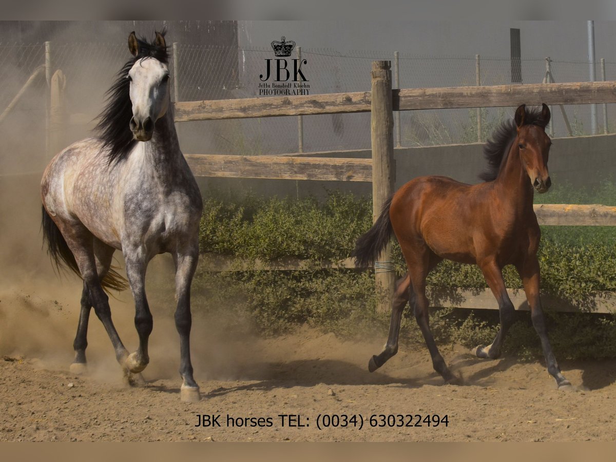 Here you can see the Guardiola-bred grandfather EDUCADO X from the Guardiola breeding right away. Those knowledgeable about breeds know that this is a quality horse. A wonderful PRE mare with great go and impressive dynamics in her movement, and a very friendly, honest character. OPRAH will surely be interesting later for both breeding and as a dressage or working equitation horse. She comes from a peaceful home where she has never experienced any harm. Born on July 15, 2019, with a height of 1.60 m at the withers. Oprah currently has a foal at foot, which can be weaned relatively soon. She was also started under saddle before her pregnancy. Free of melanoma!!!!