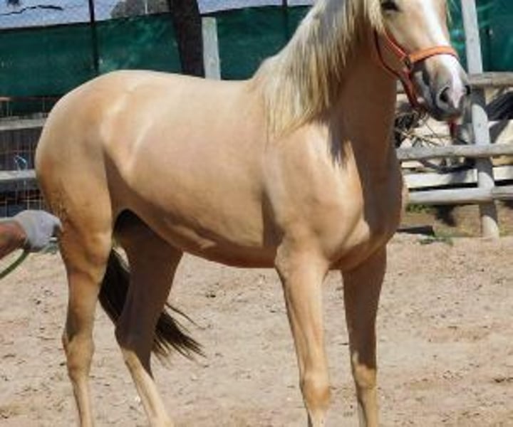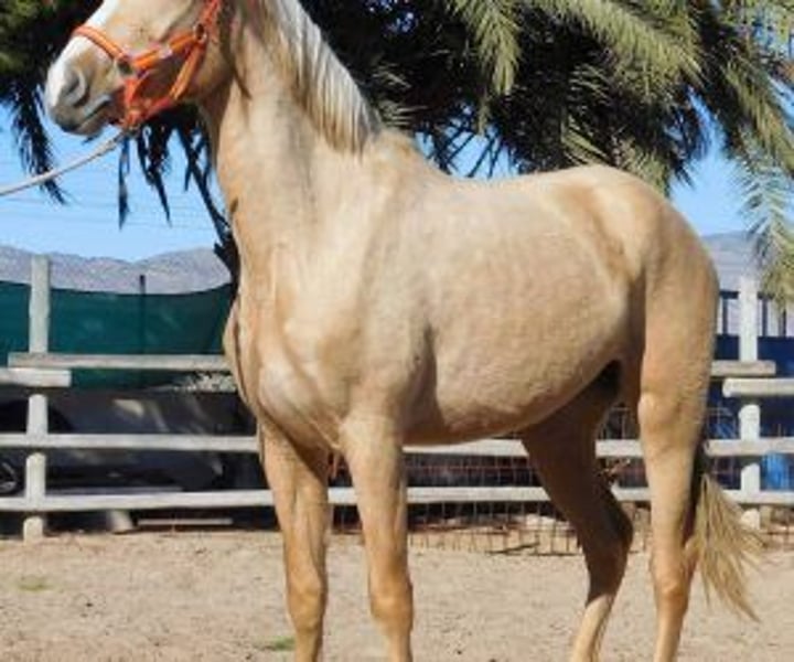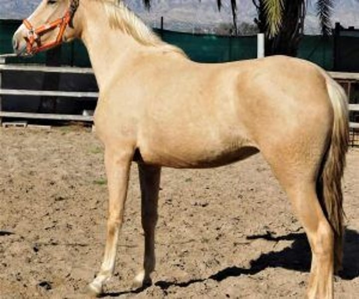 Muy bonita potranca palomino. Buen carácter, es muy dócil y se deja acercar y tocar por todos lados. Preñada de un semental palomino, pronto tendrá su potro.