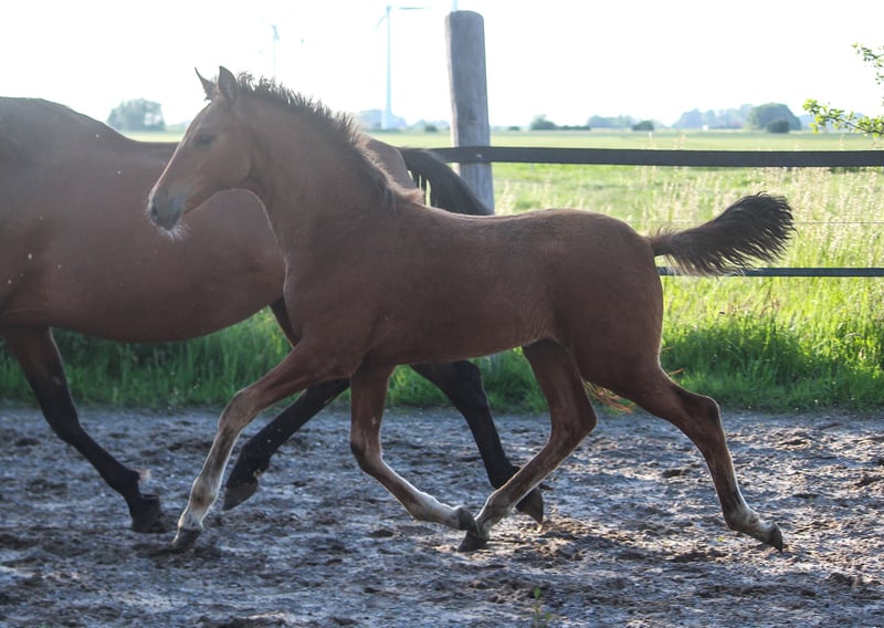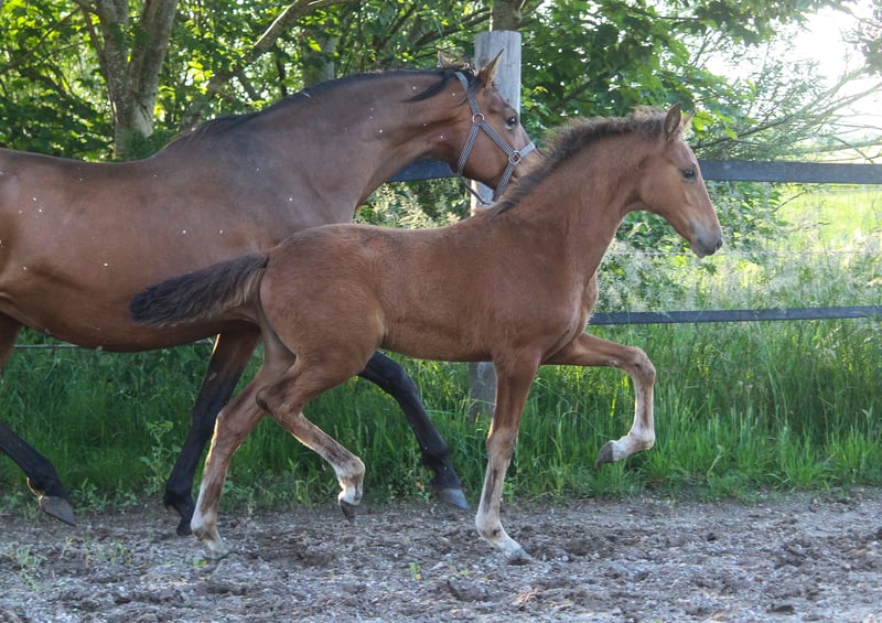 Die elegante Baylena kommt aus unserem auf PRE Sportpferde spezialisiertem Gestüt. Ihre Mutter vererbt eine starke Hinterhand, viel Schwung und Schulterfreiheit. Trabverstärkungen sind die Paradedisziplin dieser Linie. Baylena hat einen sehr vielversprechenden, harmonischen Typ mit guter Rückenlinie und Halsaufsatz. Vom Charakter her sind alle unsere Pferde sehr freundlich im Umgang und sehr rittig unter dem Sattel. Bei Interesse an Baylena, kontaktieren Sie uns gerne.