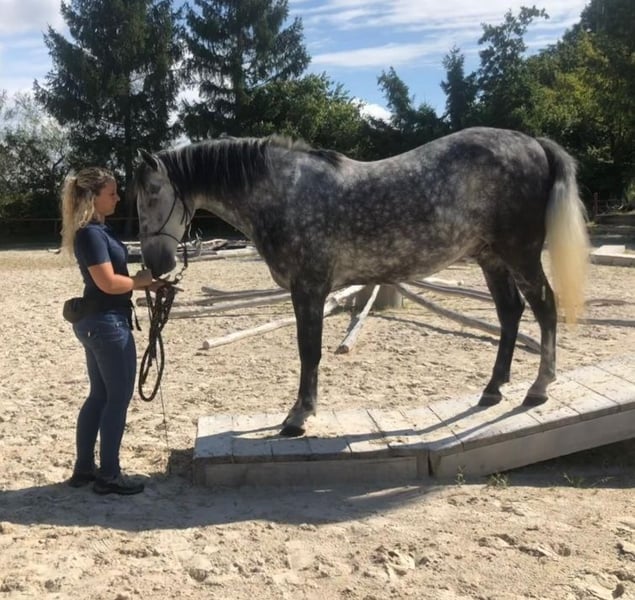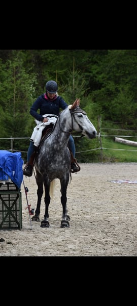 Blue ich ä 12 jähriger PRE Spanier Stockmass 1.57 us erster Hand. Er isch Westerngritte kennt aber ou Englisch. Er isch ä mega ahängleche verschmuste u äs tod liebs Rössli zu chind lüt u hünd. Er wird mit Hufschueh gritte isch aber früecher ou bschlage gsieh. Ha mit ihm Horseagility, extrem Trail, Gymkhana gmacht. Mit hei ou scho mängisch mehrtägegi wanderritte gmacht. Er läbt bi mir imne offestau mit viuuu uslouf was er ou umbedingt brucht. Wenn dir inträsse heit de mäud di doch.